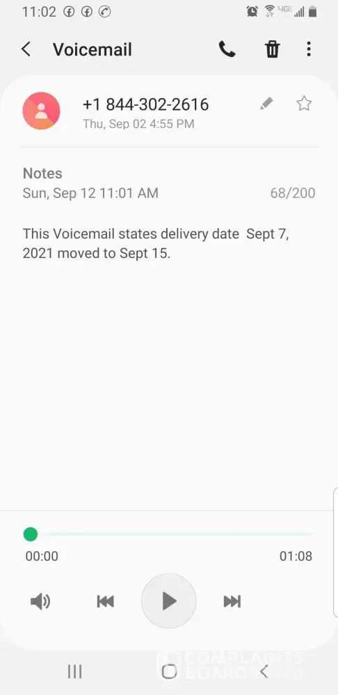 So I tried to stay up to receive my order on September 10, 2021, but due to my long hours, I fell asleep. My complaint is the driver only contacted me by phone one time, then return back with my order. I feel if they are going to deliver your order they should try to make contact more than one phone call. I Had been up all morning waiting on the order.