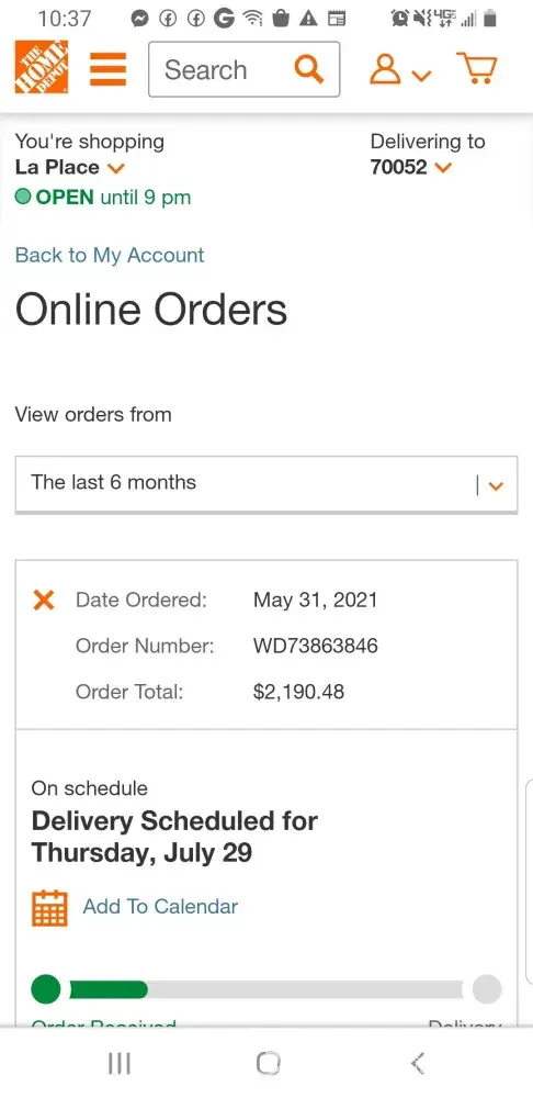 So I called, Home Depot to check the Online status of my delivery and they informed me, that the delivery person has attempted to make the delivery and I was told I could only reschedule my order or cancel my order. I told Home Depot over the phone that this, was a gift for my wife for her birthday and that I really need the order today. They informed me that it has been over an hour and that the person who delivered the rider might be back in Houston by now.