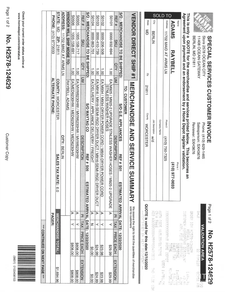 Today 15 Dec 2020 I brought my father-in-law into to the Berlin MD store after having a family argument as to why we needed to go to Home Depot versus Lowes (aka Brand X). We needed to order & have delivered a new washing machine & dryer & accessories for my 87 year old father-in-law. I had to use the argument that he/we could save 10% on our in store...