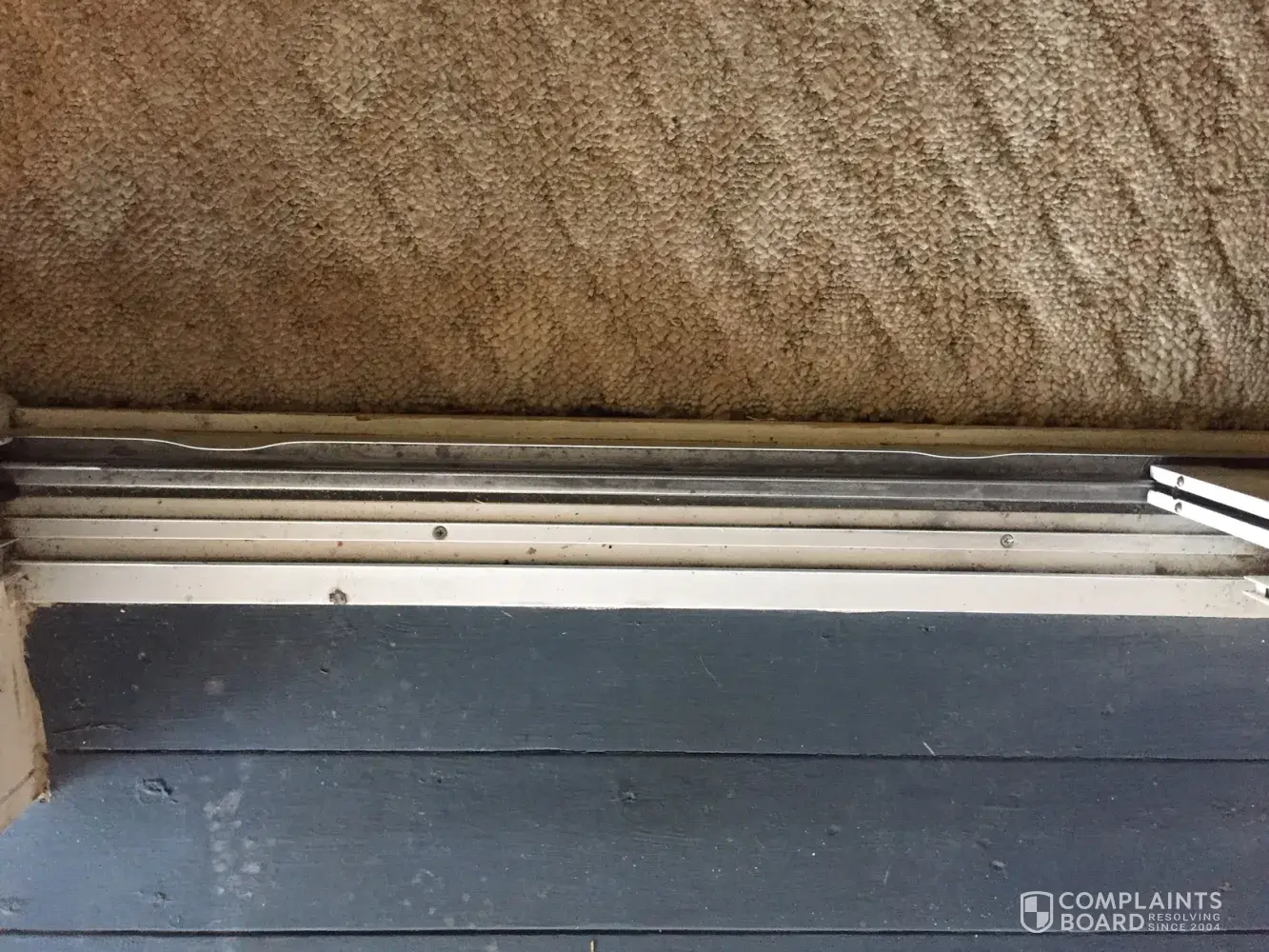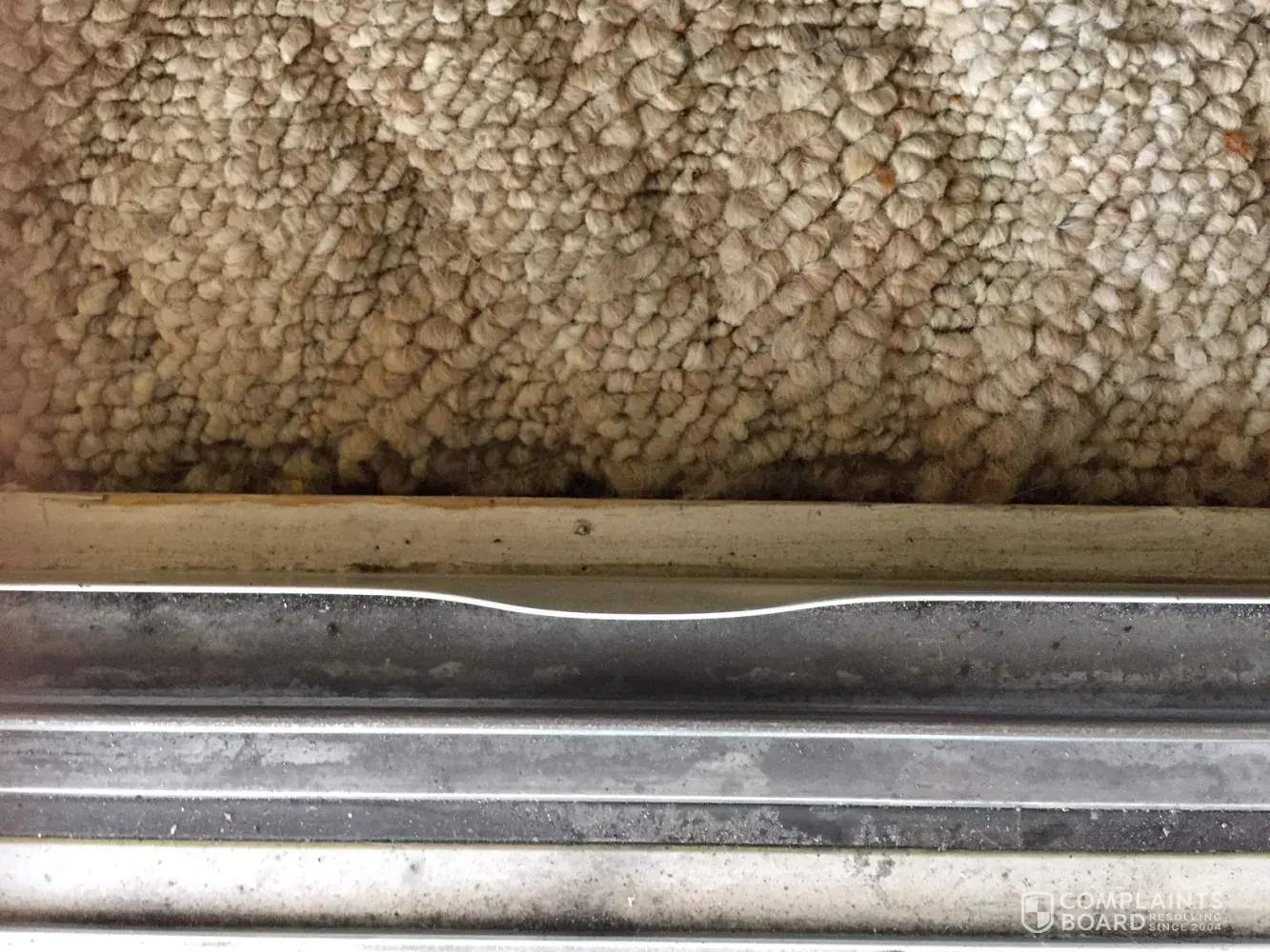 The cavity between the masonry opening and door frame was covered with decorative wood and poor job of caulking was done. During the installation, the installers refused to wear face masks and repeatedly asked to use a bathroom.