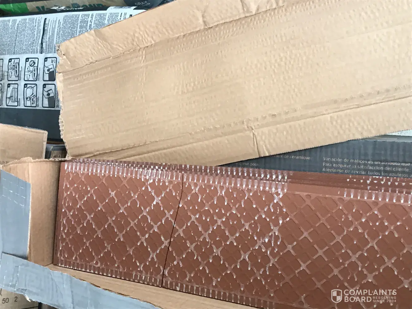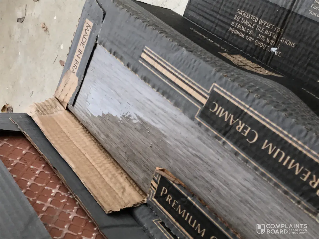 I can't believe the terrible service, the Home Depot associates moved every thing from outside to the porch, the cardboard of the boxes are so wet, a lot of tiles are broken to the point that you can't even lift some of the boxes because they are falling in pieces (totally broken) at lease 5 of them, 2 concrete bags are hard and I cant find the separator of the tiles.