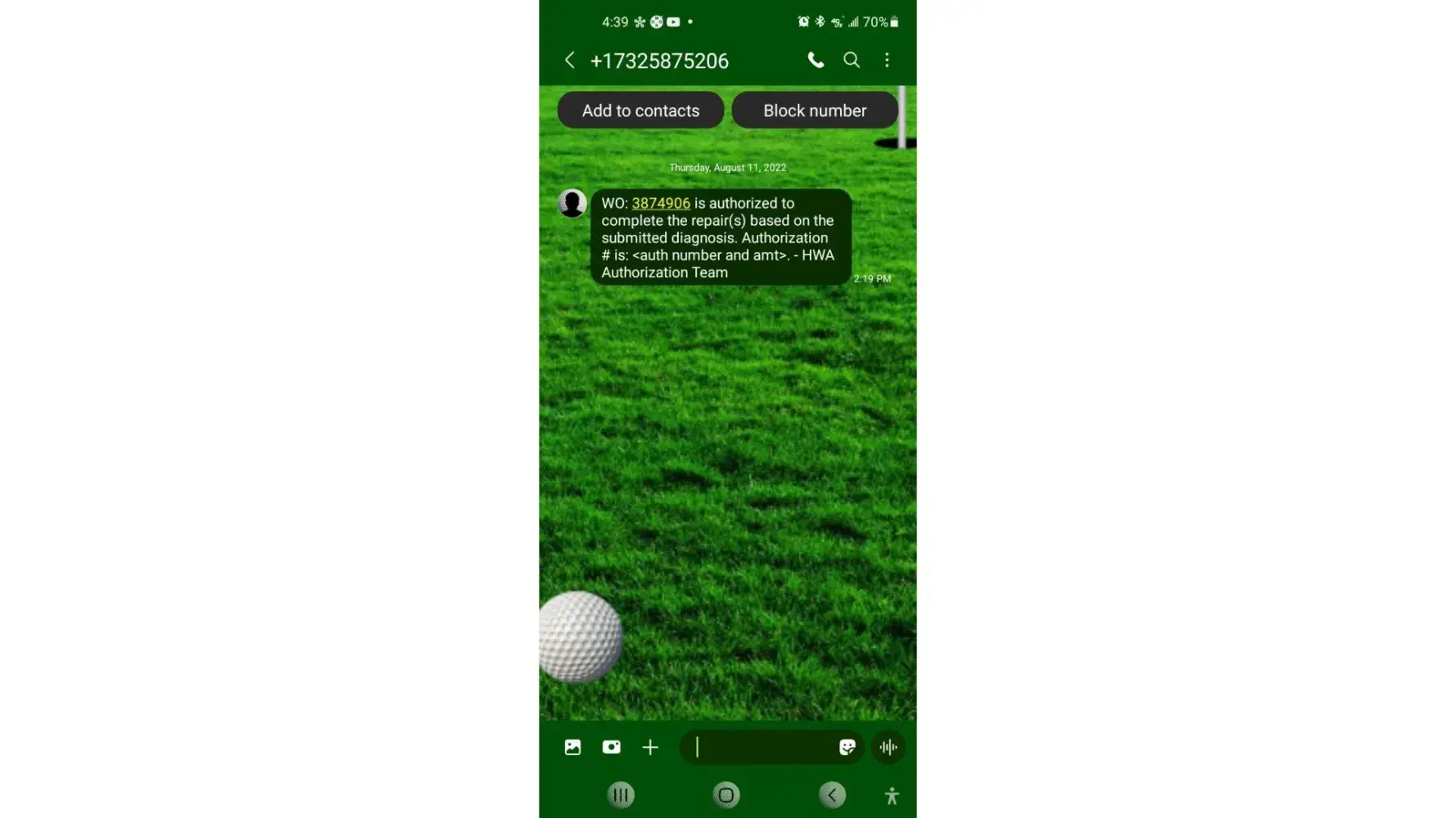 On August 10, 2022, American Tech Support Heating ~ AC provided an invoice/estimate of $3800.00 which I uploaded to the HWA site. On August 11, 2022 I received authorization sent via text for Work Order #3874906: