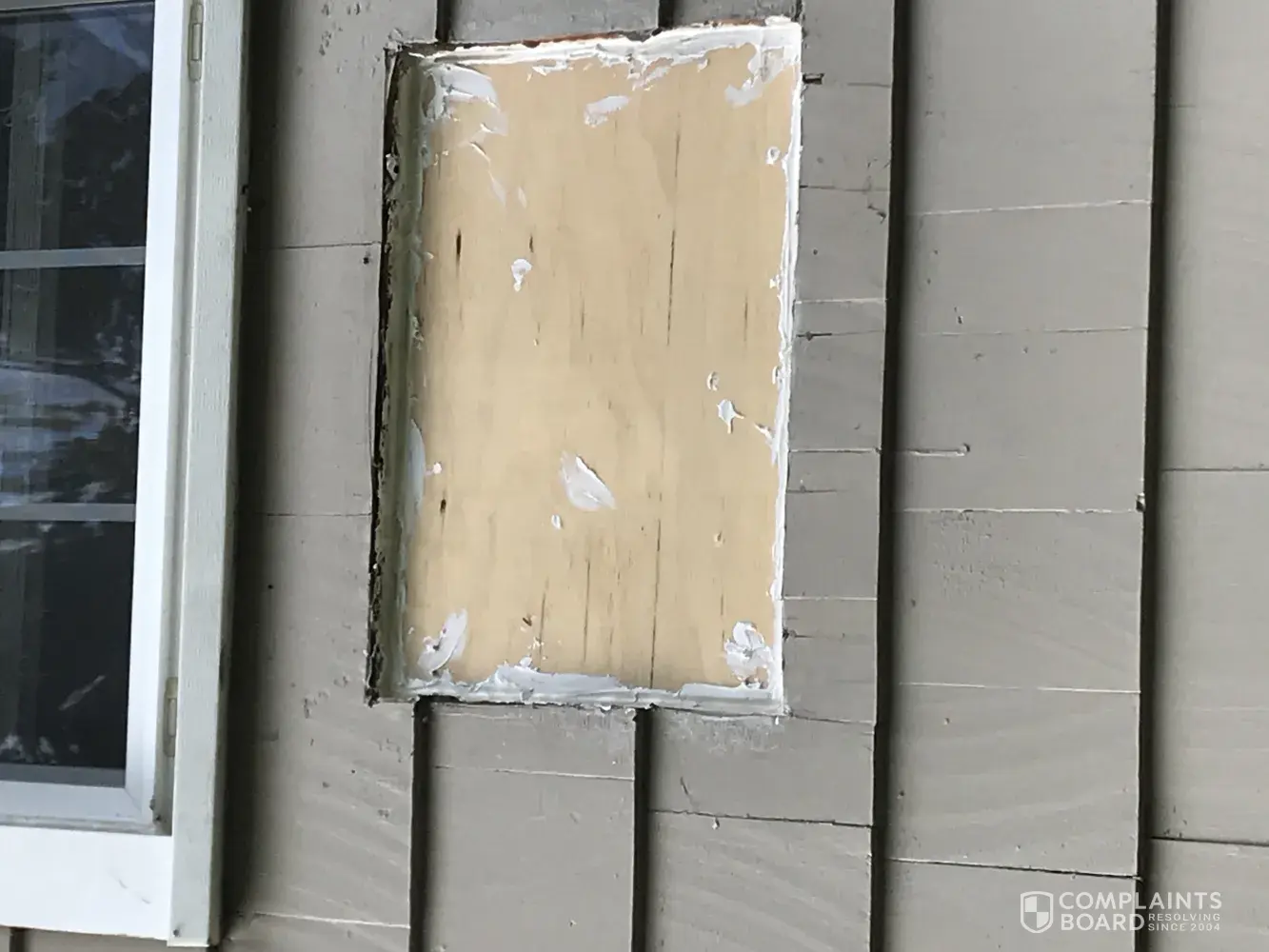 I would like resolution ASAP. I now have an exposed section of an exterior house wall that needs siding put back on it, and a small area inside the house, opposite that hole, that needs another coat of joint compound. Completion should take no more than 90 minutes.