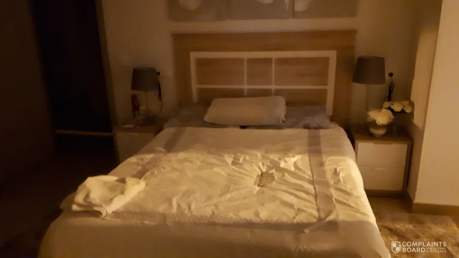 We asked for the Complaints book twice but this was not given to us to fill in, but totally ignored us, The holiday has been very stressful from the start, no change of bedding clothes hangers etc we had to go out and purchase the stuff ourselves .We are asking for a full refund due to all the stress, water coming from the bathroom to the bedroom and having no sleep due to having curtains or blackout blinds to the windows .
