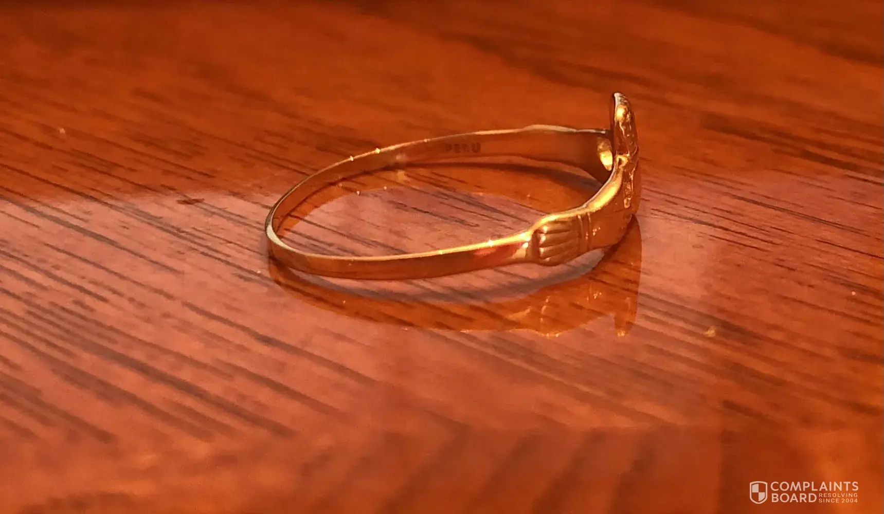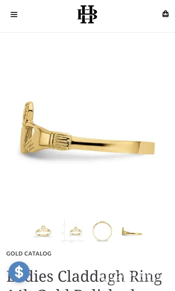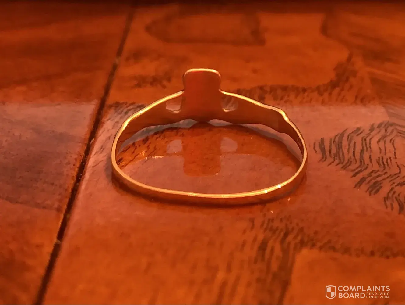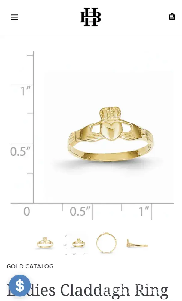 I had been searching for a dainty looking, gold Claddagh ring for a while and thought I had finally found it when I discovered this ring (https://www.homebello.com/ladies-claddagh-ring-14k-gold-polished-d1862/). However, upon receiving it in person, the quality is very disappointing and not true to the photos. While it is a pretty ring, the band is extremely thin and not consistent in size or thickness. The photo on the website shows the band as the same width all the way around, however as it goes around, it becomes increasingly thin and flimsy. I've only worn the ring for one day, and it's already beginning to bend. As it is final sale, I am unfortunately stuck with it. Very disappointing.