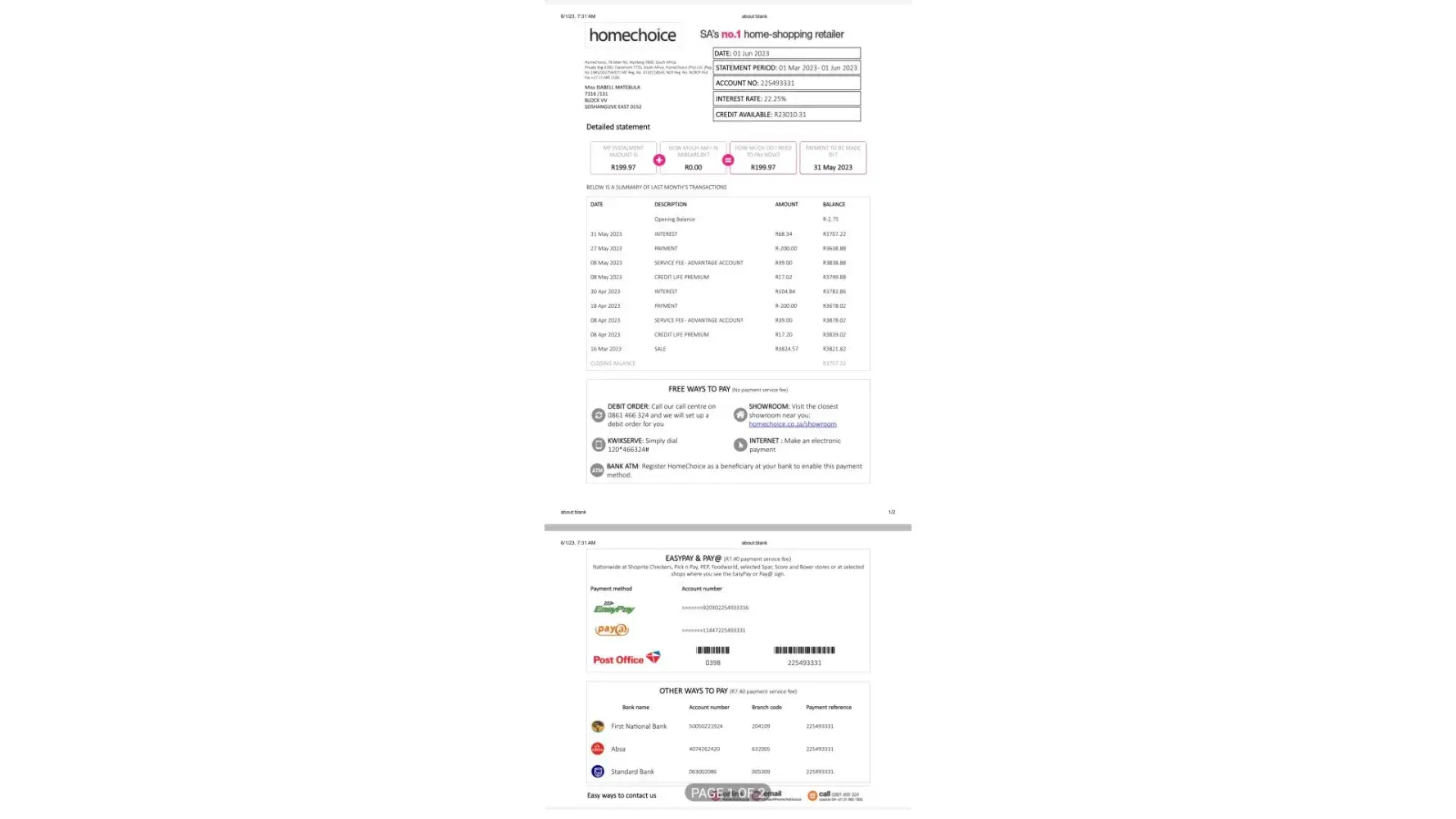 homechoice (pty) ltd - account number: [protected]- ms m freeks