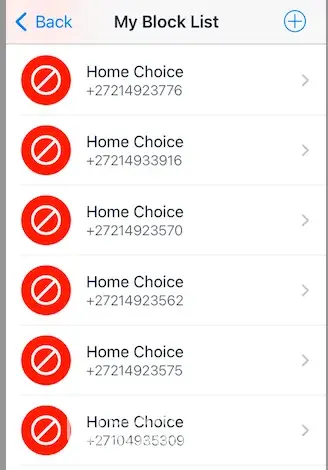 I am receiving calls every day and even on Saturdays from Home Choice and I am not a client and will never be. See attached photos on their call frequency. They have even called me again at 09:04 this morning, 3 December. All the +[protected] ... are Home Choice numbers.