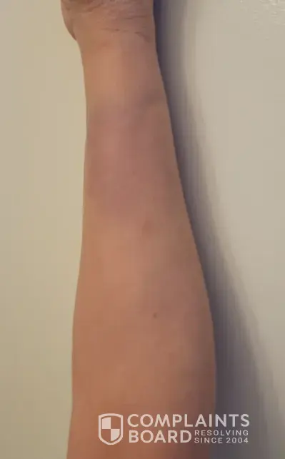 I was called to a lane so I could make my purchase but I waited because the customer before me was struggling to load the items into their cart, no one behind the register offered to help this customer. The customer moved over so I could complete my purchase but I was hesitant because I felt I was still in the way. Two of the items were small metal tables, one of the metal tables which was very heavy fell toward me which I stopped with my wrist so the table wouldn't hit my head. When the table hit my wrist it hurt and I knew it would leave a big bruise which it did the following day, I have pictures which have been provided.