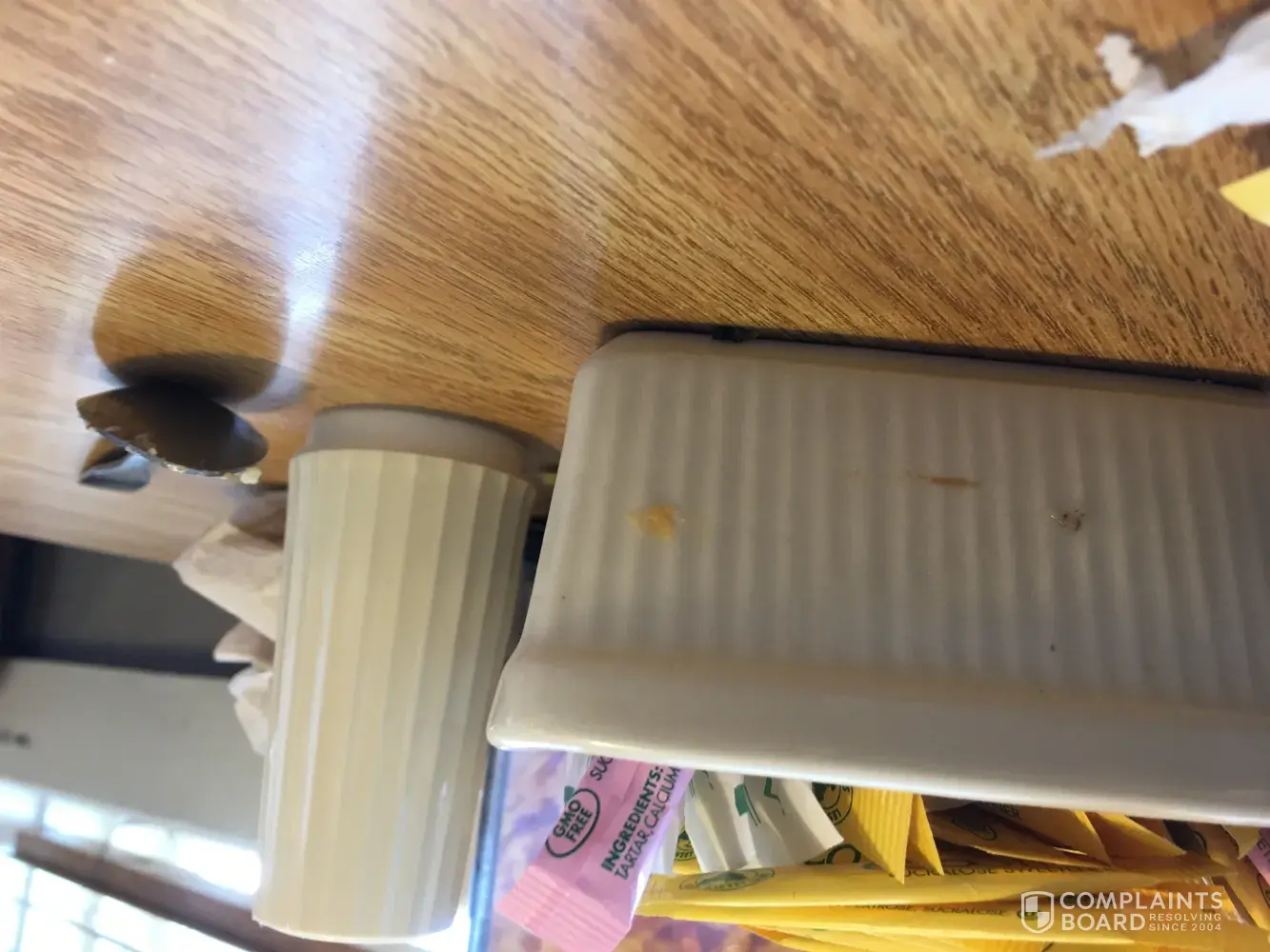 We left your restaurant still hungry. We immediately noticed the plates for salads were so dirty. I had to literally wipe my plate off with my jacket. The utensils were filthy, the regular plates were filthy. The carpet smelled. There were dead bugs and filth in the windowsills, there was filth on the wood portion of back of seats, sugar container with dried food, and the list goes on. I was pretty upset that I had to mention the filth on my way out to one employee and she stated there have been company cutbacks, and they have not had a dishwasher machine in three weeks! After we left, my daughter became ill and spend most of the day in restrooms. I made it home and then became very ill, with sweats, severe stomach pain, diahrea most of the night and still feel nauseated with some stomach pains. I have attached some pictures as well and I did show them to the employee so she knew what I was talking about. If I notified the health department, they would shut this hometown buffet down. I still may get in touch with them. I have attached pictures.