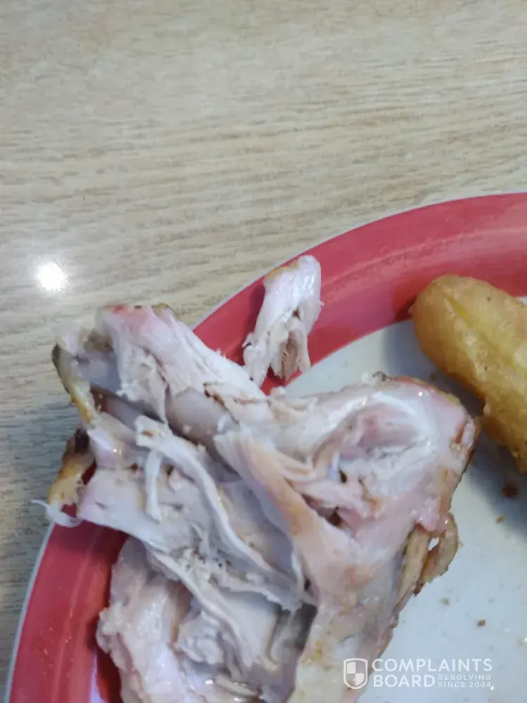 On 6/19/2017 around 3ish my husband and kids went into have a late lunch. My husband and I both got some chicken which I thought tasted good untill I got further. It was undercook . I told the server who looked at it and then stuck her fingers in the chicken pulling it apart (which I thought disgusting to do since it have been in my mouth) but then she said its just the seasoning that makes it pink. Ummm I don't think so my chicken even had the texture of being raw I understand a bit of pink whatever but it felt raw. She disagreed with me. I will never eat there again I am highly upset about it. I work with food daily at my job so I know the difference.