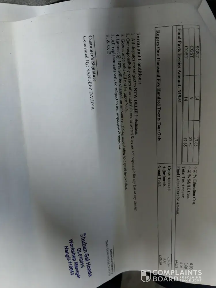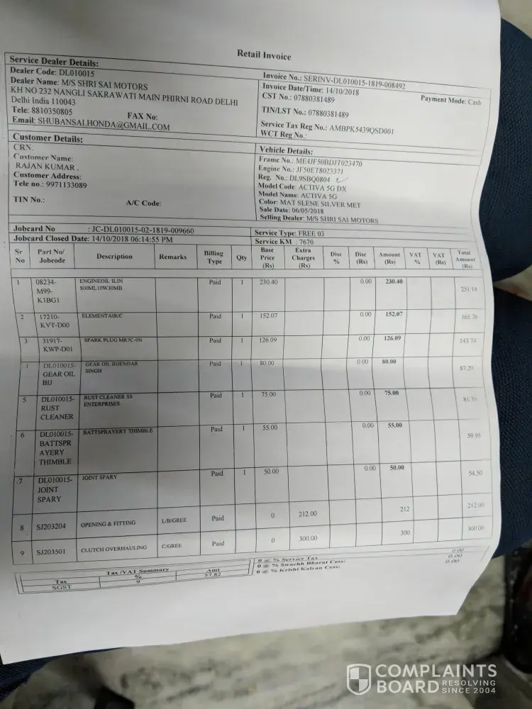 Bt your service department Shubham Sai Honda