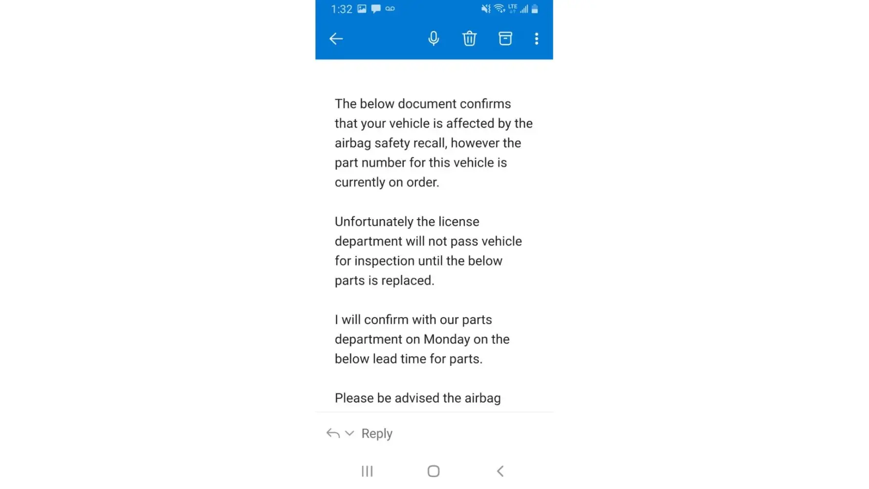 Why are recalls being enforced by this dealer if they do not have parts for indefinate periods of time. no loaners or refunds. To date no replacement part has been install or remedy given.