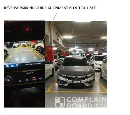 My Honda Civic reverse camera parking guide is not aligned. If I were to park following the parking guide, I will certainly knock into another car (or object) on my LEFT. The alignment is off by about 1.5 feet. This issue came with the car when it was delivered. It is a safety issue. When I brought it up to the attention of your service centre, they said that they cannot do anything as the camera is fixed. Also they want to fault me for 'skipping service schedule' therefore no warranty is applicable. I want to say that the 'service schedule dates was only written on my service booklet on my last visit on 29/Nov 2020. Before that, I only had the impression that my service was due when I hit 12000km. By the way, my current car mileage now is only 9000km. When challenged on this, your insists that they cannot do anything on this.