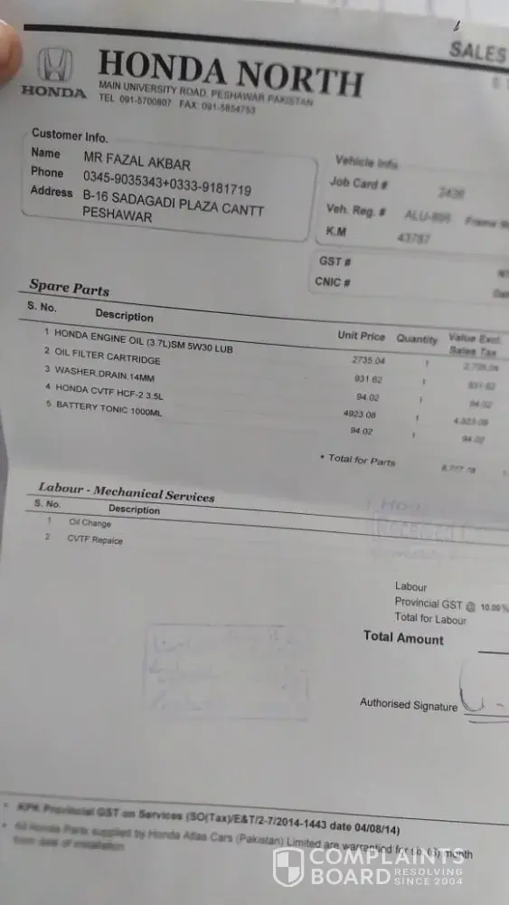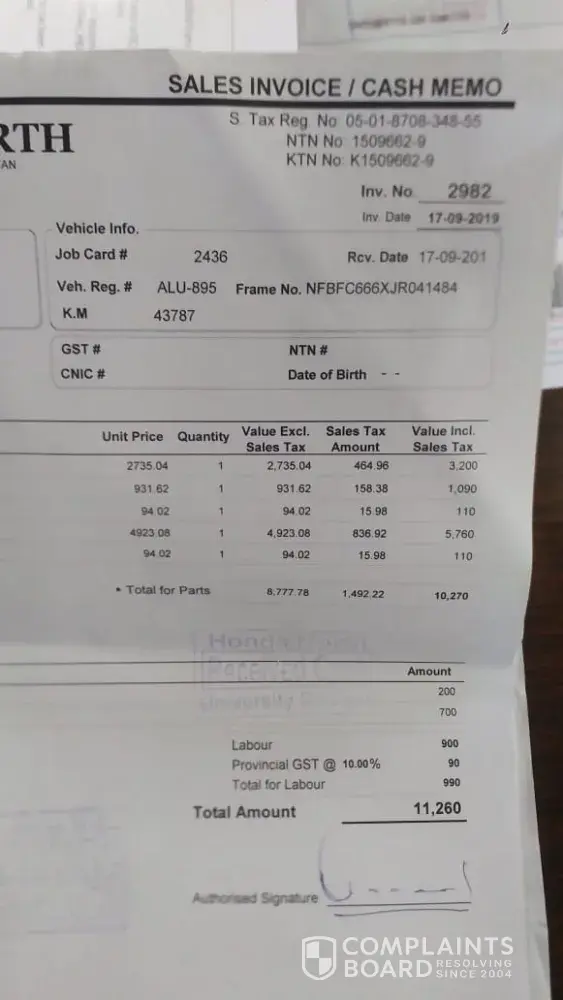 I am a loyal honda customer since 2005 and always got due respect of my opinion and customer care but this time the way I was treated by your local representatives (honda atlas cars pakistan & honda margalla islamabad pakistan) and handled my brand new car. Am very disappointed. First of all getting demaged part in brand new car and then instead of being apologetic and replacing the demaged part with new one. They almost forcefully repaired 600km driven brand new car. I have paid pkr 4.00 million approxmately from my hard earned money and what I got is demaged vehicle and mental torture.