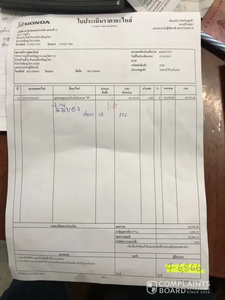 ã—ã‹ã—数日後ã€ãƒ›ãƒ³ãƒ€HQ(マレーシアクアラルンプール)ã‹ã‚‰ç„¡å„Ÿäº¤æ›ã§ããªã„ã¨ã„ã†é€£çµ¡ãŒæ¥ã¾ã—ãŸã€‚