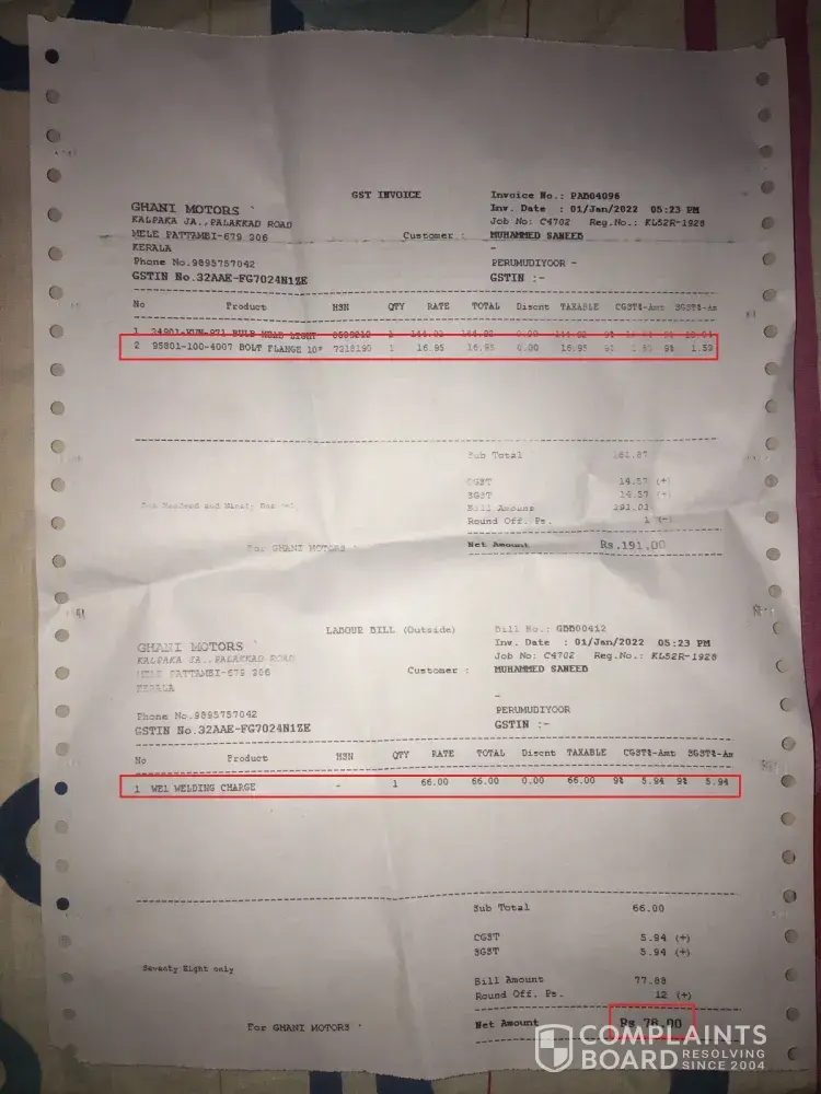 I have bought A Scooter (Honda dio BS6 New standard model) from Ghani Honda pattambi Showroom. three services have been completed. The bolt of slincer is frequently breaking. The service department of ghani Honda Charge its expense and Gst from me. I think this problem manufacturing defect of this Model Scooters,