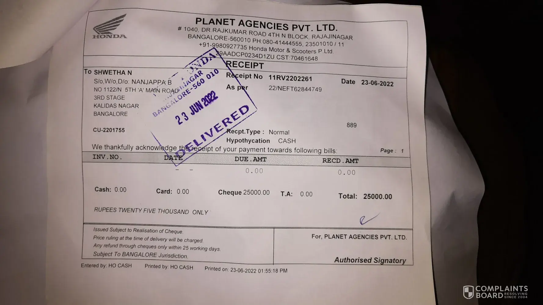 Read full complaintHonda Motorcycle & Scooter India (HMSI) complaints: history and resolution overview