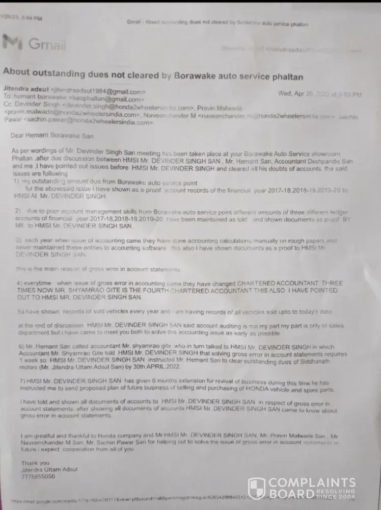 ₹1.58 crore fraud and negligence by honda dealership (borawke auto service, paltan)