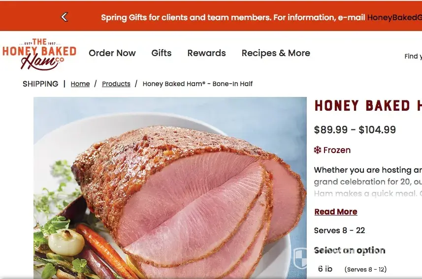 We found clear and detailed contact information for Honey Baked Ham. The company provides a physical address, 3 phone numbers, and email, as well as 3 social media accounts. This demonstrates a commitment to customer service and transparency, which is a positive sign for building trust with customers.
