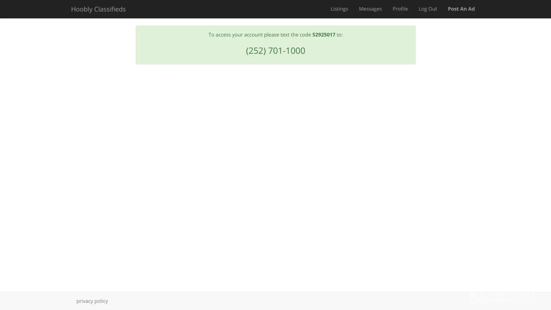 They have put a login verify code screen on my account! They say they have sent me a code, but I have never gotten one! Since December2017 I have not been able to access my account! I have tried every way possible to contact them to resolve the problem, but no luck! My ads are still on there! It is bad for my business to not be able to respond to inquiries! The puppies in my ads have been long since sold, but I'm unable to remove or update the ads! I need to contact someone at Hoobly.com so I can resolve this issue! But how?