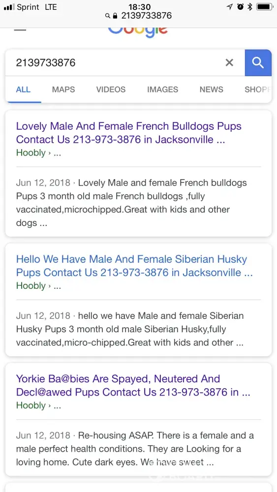 So, this seller is not in the location they are stating on hoobly, the grammar is really poor like they are not american, but also they say they are leaving in 3 days time to another state and most offload their puppies, but when you look at their seller history, they have over 10 current listings of dogs they are selling, all different breeds, so you know something is seriously not right.
