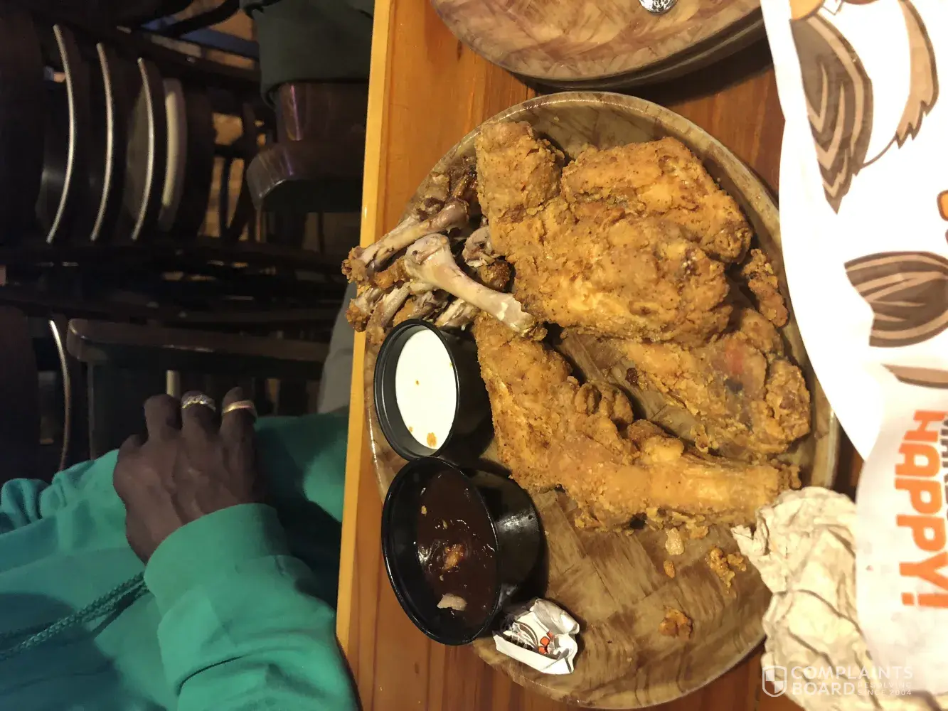 I visited your hooters located in New York the girl came out with the fries before the chicken ten minute later the chicken came taste like burn grease beer warm terrible service