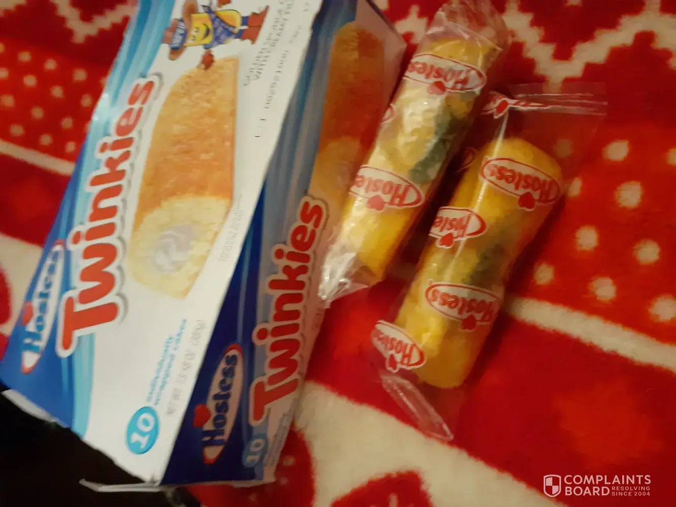 I have bought 3 boxes of your twinkies in sainsbury store in England. In each box I found that the first one out at an end was mouldy. I have enclosed photo. I normally put these in my sons lunch and I'm glad that I spotted it as he may not have and actually ate it. This is not one box but 3. It has really turned me off of them now as if I buy more are they also going to be mouldy