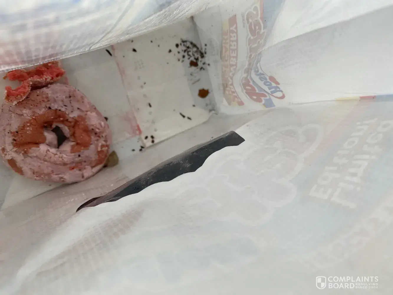 Found snail shell and possible feces in my bag of donnettes. I emptied bag and upon further inspection say the feces and she'll at bottom of bag.