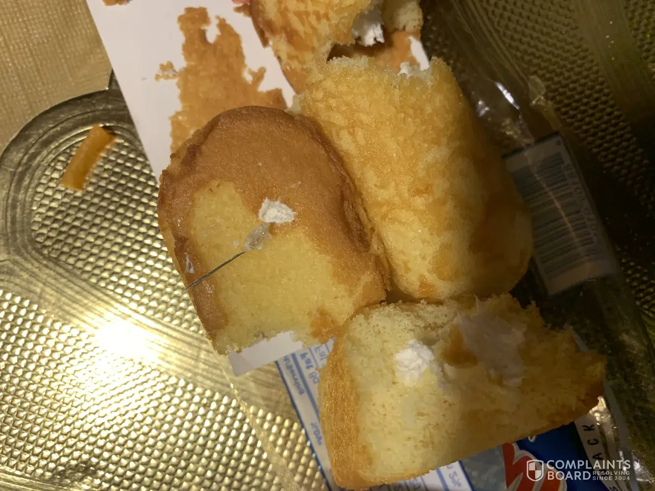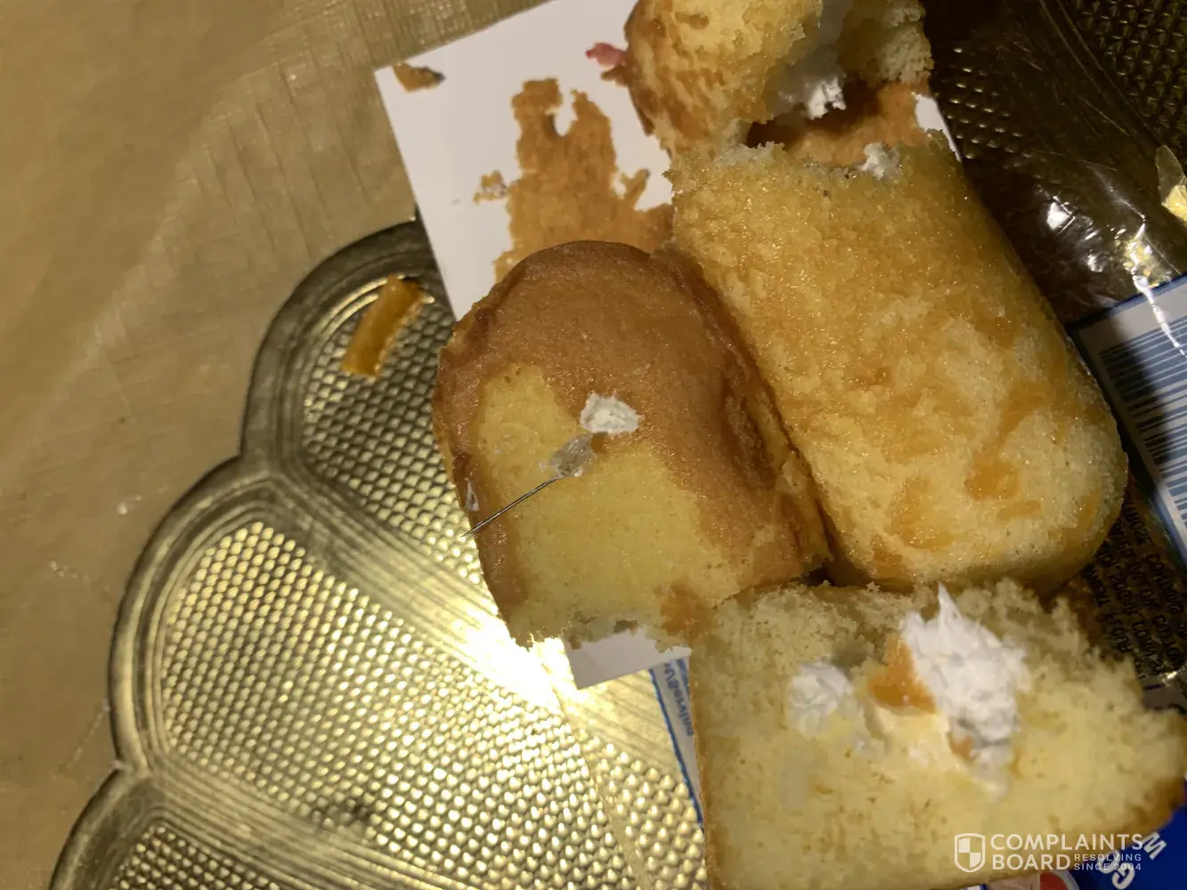 I brought a Twinkie from the 711 Saturday me and my children I bite a piece of it and bite down on something thinking it was a filling from my tooth I moved it around my mouth to spit it out when I felt a huge poke in the roof of my mouth I ran to my sink to spit it out and whatever it was was stuck in the roof of my mouth my grandmother looked in and said it's something up there I stuck my hand in my mouth and pulled it out it was a clear piece of plastic with a needles inside of it I got scared ran to the bathroom washed my mouth out and my grandma took me to the er they cleaned it gave me a few shots and and said what I swallowed would pass I went home and started to gag and cough and cough up 3 pieces of plastic this is crazy I never felt so scared in my life to eat I can't even sleep now the roof of my mouth is sore and swollen. My nerves are on edge and nobody will help me find out what's next.