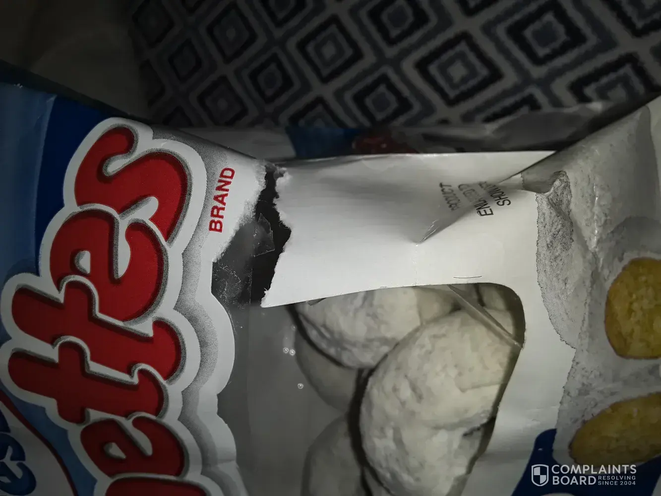 I bought a 10oz bag of powdered mini donuts from Walmart in Idaho falls Idaho on December 9th. They were stale. Looking at the bag I noticed there was a rip in the bag. I don't know if the tear in the bag happened at the factory, during transportation, or in the store. I'm usually very pleased with this product, so you can imagine the disappointment when I opened the bag and found all of them hard as a rock.