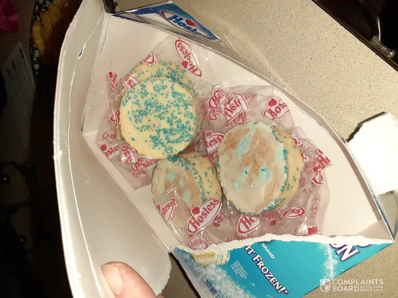 I realize it may be a little late to complain, but as I was cleaning out my freezer, I saw the box again and decided to write.