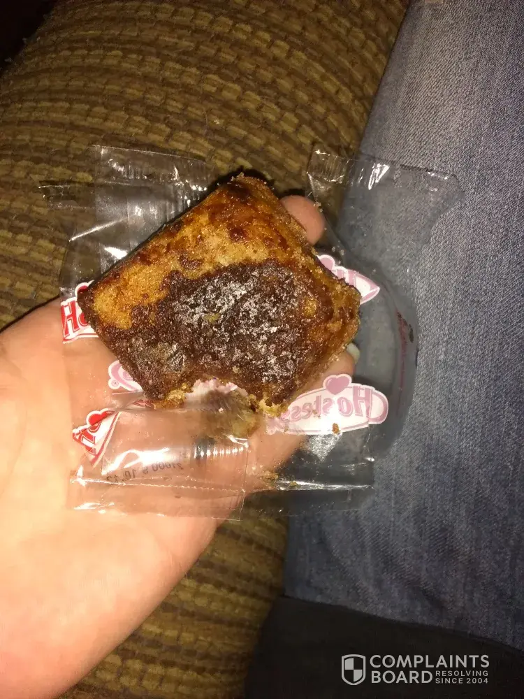 It was dry with a small amount of"peanut butter" in it. The peanut butter was dry like cake. When I bite into your products I expect a burst of flavor and have always been rewarded with just that. This time the cake was dry, hard to swallow. The peanut butter was almost non existent and dry. I really hope that your ho ho's are better.