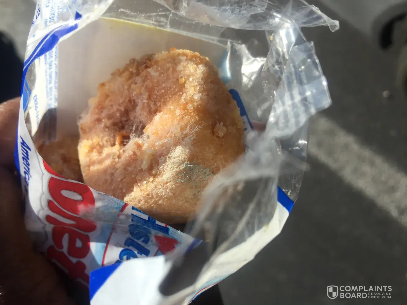 I bought two packs of crumb doughnuts today boy was I excited they are my favorite. I usually look at my food before I eat it but not this time. I ate 1 doughnuts & it tasted weird as if it was sprayed with something then my mouth went dry! I spit it out immediately & looked at the rest of the doughnuts they where all molded . This ruined my day I immediately started vomiting.