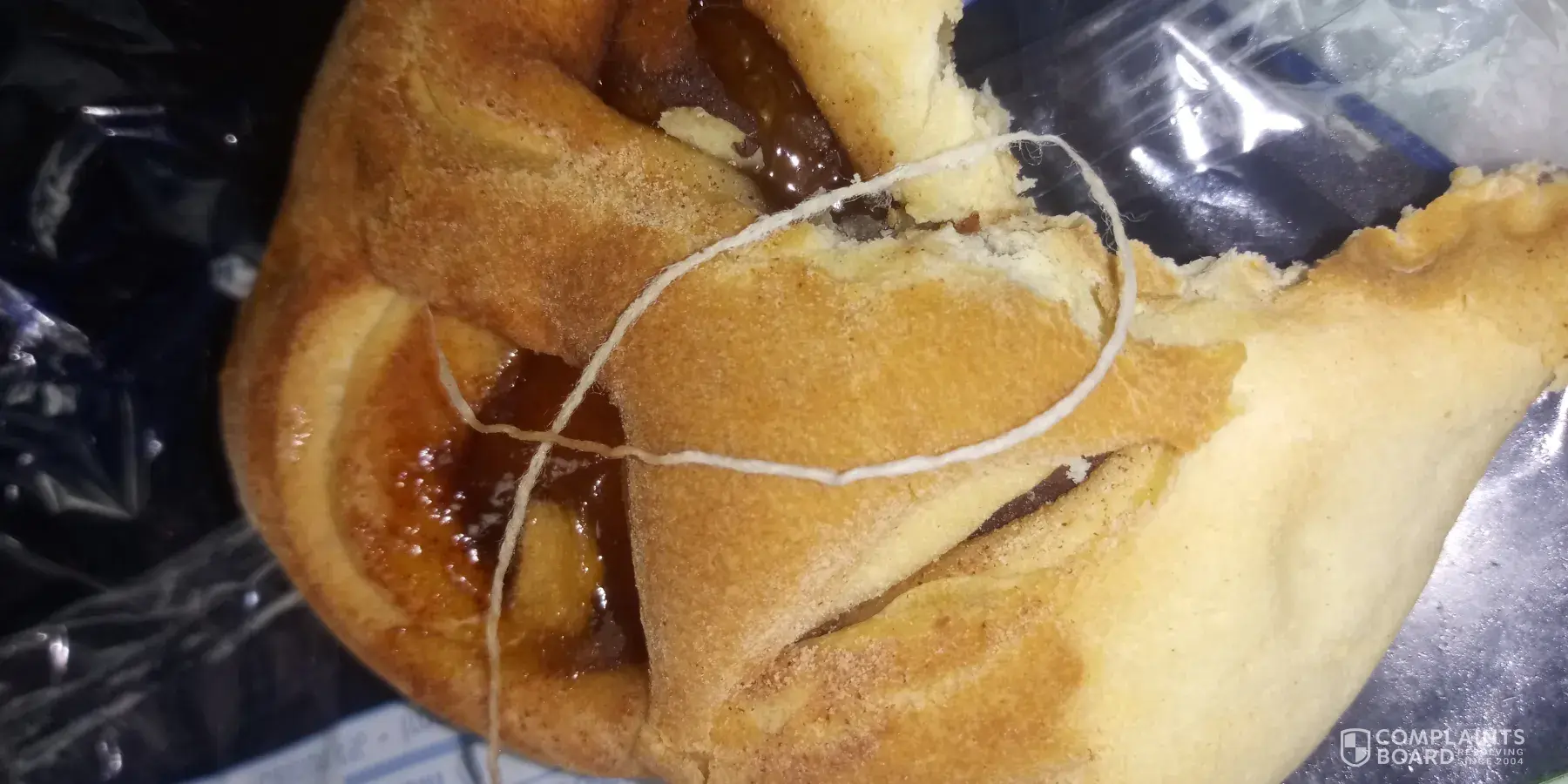 I bought an apple Danish and ate half of it. As I got to the middle I took a bite and got something like a wax rope. Not sure what is was. I'm so glade I got it and not my kids. This is something that could have choked a child or anyone. This is not safe and there could be more out there with this stuff in them. So please contact me at [protected]. Please let's get this resolved.