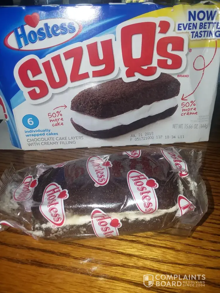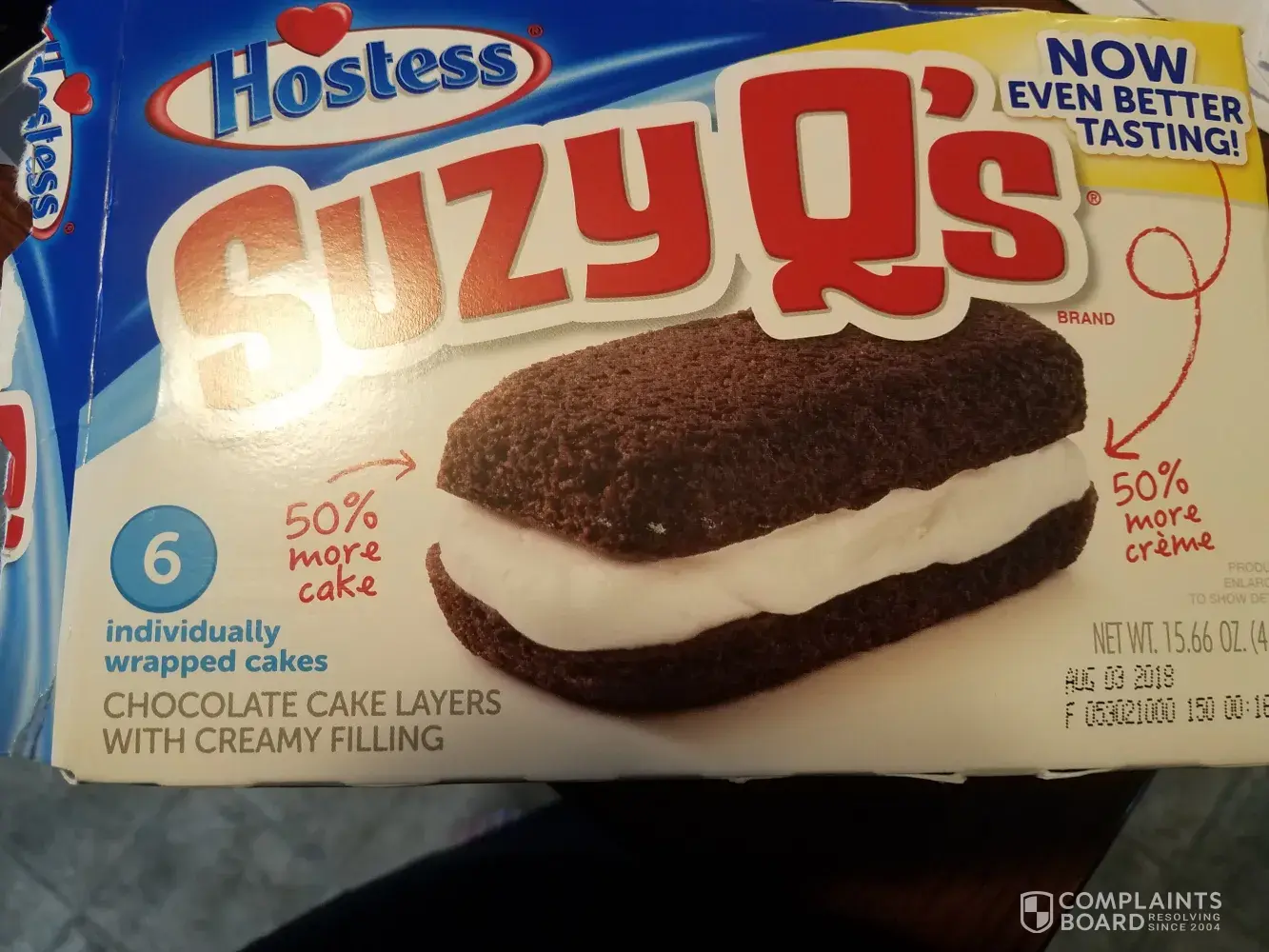 I saw on the package that the Suzy Q's now have 50% more creme. Not true. It seems like the same amount of creme as before when the Suzy Q was first brought back. This was always my very favorite Hostess snack. Not anymore. The cake is dry and no longer tastes like the chocolate cake I remember from before. When I first tasted the Suzy Q the chocolate was more of a devil's food chocolate. A richer chocolate flavor. Now it tastes like a knockoff. I am very disappointed. I doubt I will purchase any Hostess product in the future if this is what I have to look forward to.