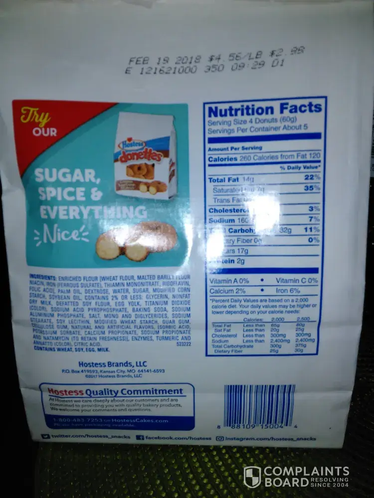 I am very disappointed in my Hostess product.