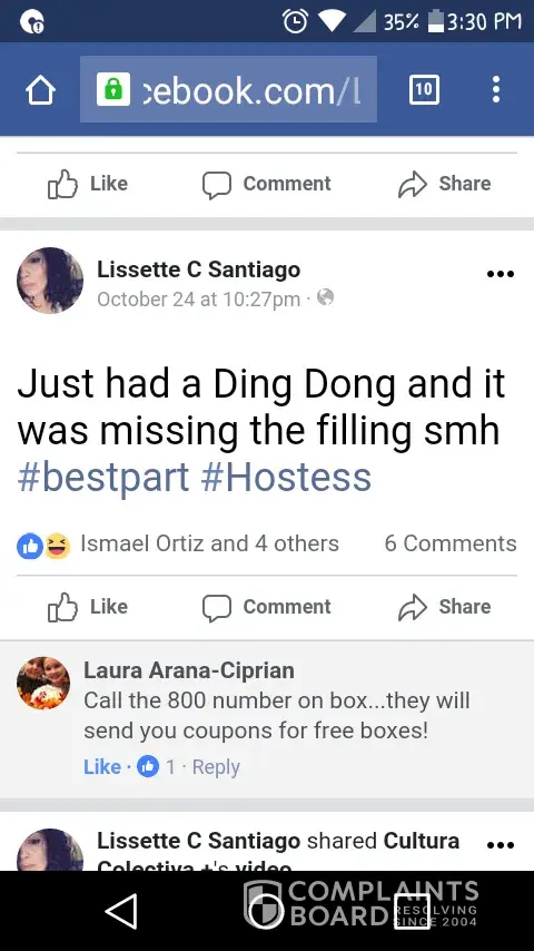 I purchased Ding Dongs the other day from Wal-Mart. I go to eat one and there was no cream filling. Today 10/29/17 my daughter ate one and again there was no filling! It's extremely frustrating. I'm a single mother and can't efford to always buy them, but when I do I enjoy them every much. My child and I are very disappointed! What can you do to make up for it?