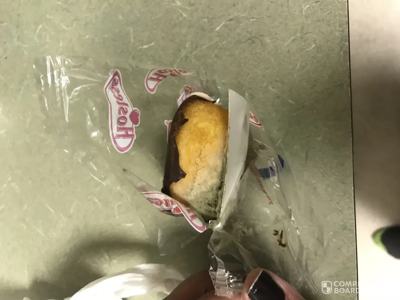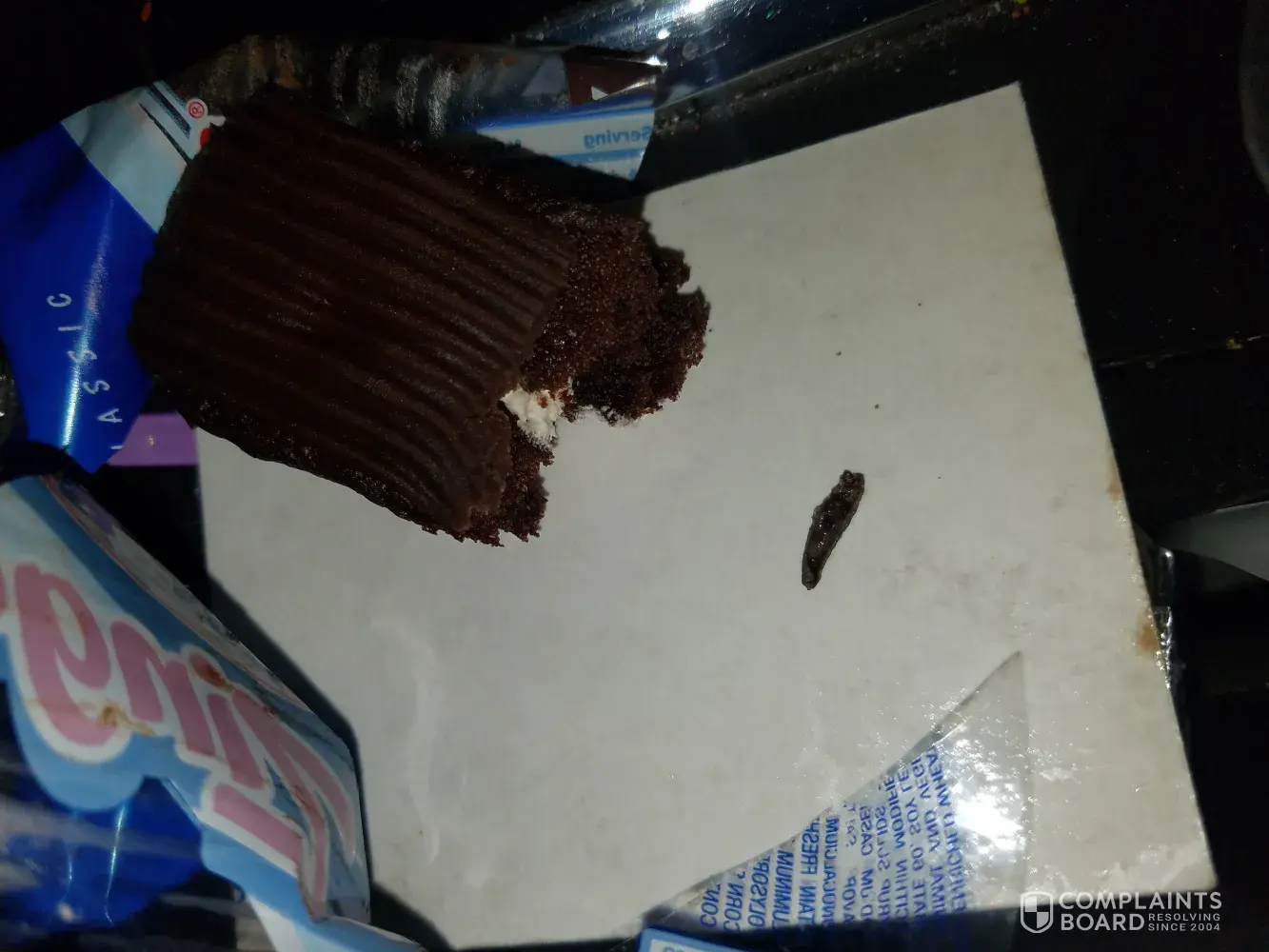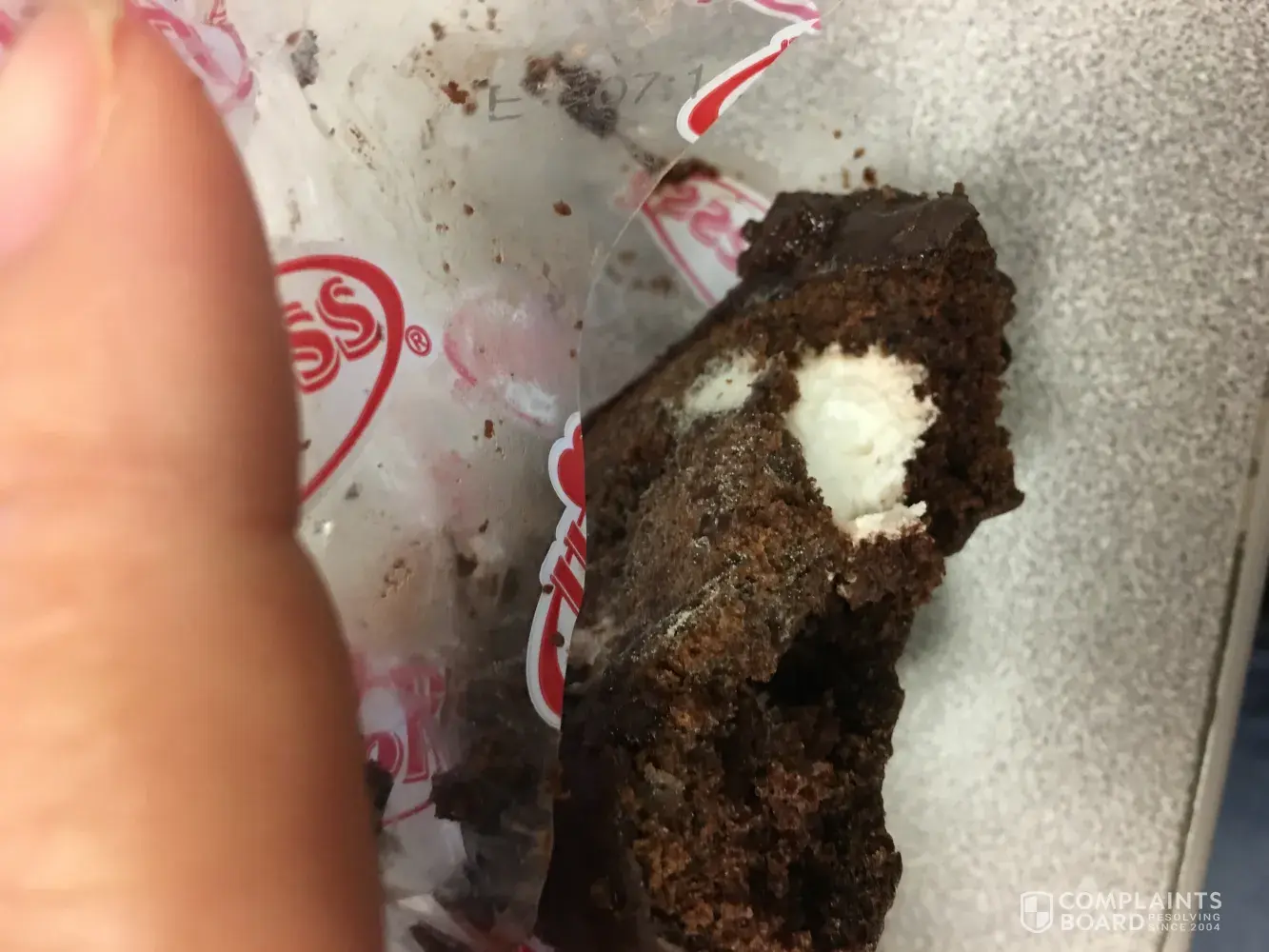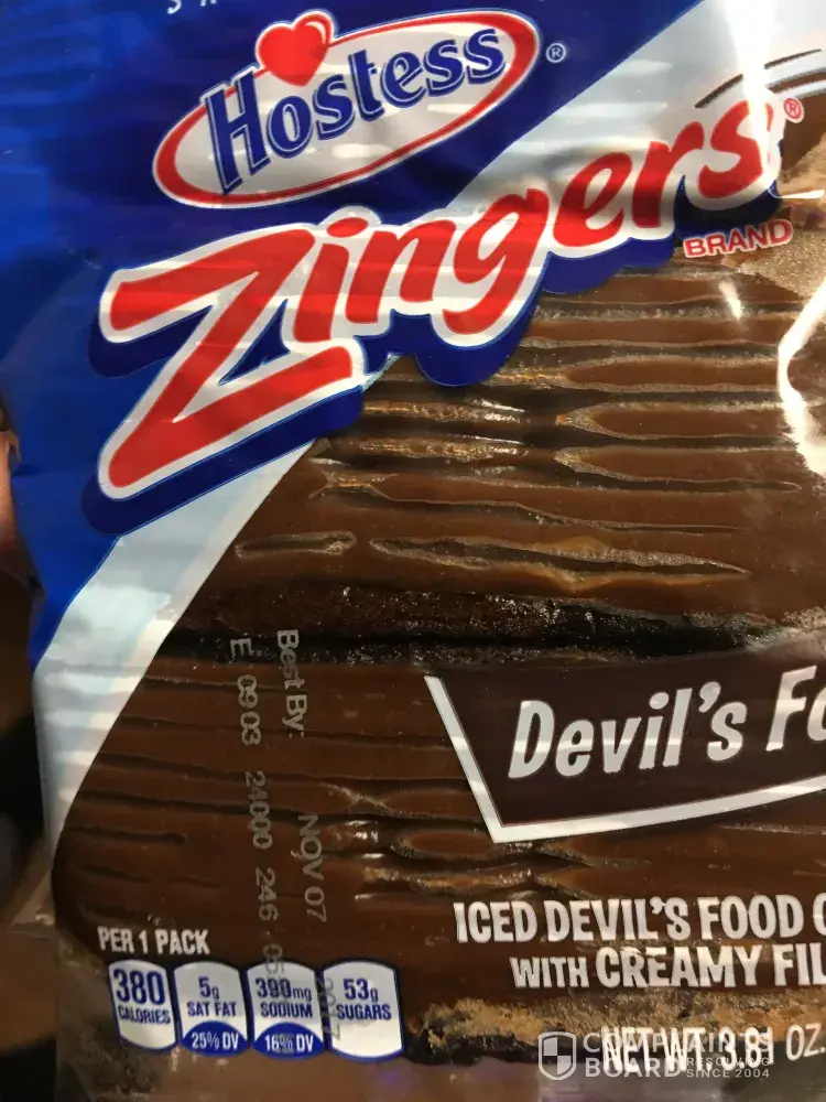 Purchased a box of chocolate zingers. I was primarily the person eating them at approximately 1-3am. Going into a dark kitchen, opening a package then consuming. Tonight I had finished cleaning the kitchen, reached into the zinger box, last one. I
