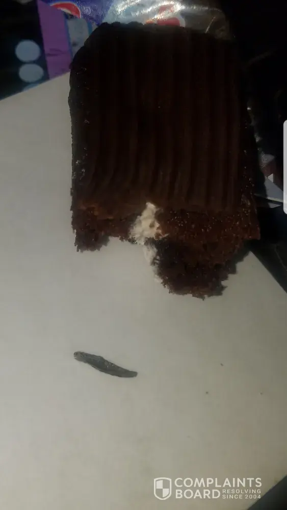 I purchased a box of iced vanilla zingers and when i was about to open a cake for my 3 year old i noticed something black was in the cake on the outside. Not sure what it is it feels hard. Box states good until october 22. I just purchased the box. I can send the cake as it is still in it's completely sealed package. I do not feel safe to have anyone eat it as we don't know what this is. Please get back to me what this could be. Thank you