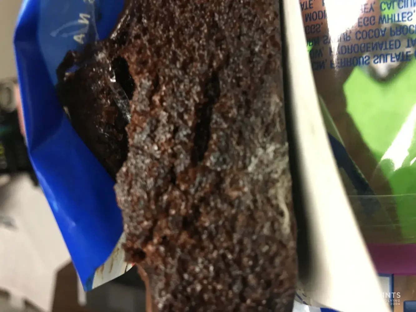 Opened the package with the fluorescent kitchen light on and I am horrified by the sight of mold on the bottom of the cake. I am sick to think that I ate a whole box of mold over the last week.