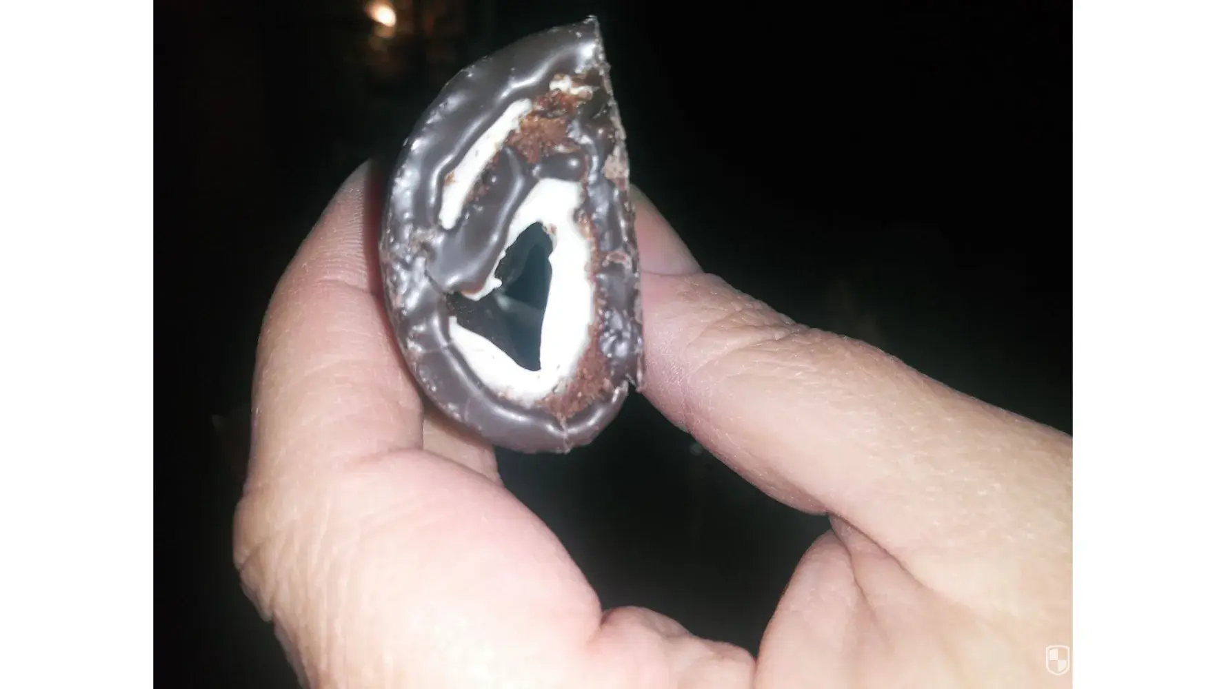 Grabbed a zinger out of the box and noticed something black on the end of it. When I broke the piece off to inspect it, I couldn't figure out what it was. It was a hard piece of something that I still am not able to identify. In the pictures I took, you can see where the piece was located on the Zinger. Needless to say, I quickly lost any desire to eat Zingers and threw the box out. It was disgusting. I am so disappointed that the Hostess products that are being sold now are so different from the products the original Hostess company made.