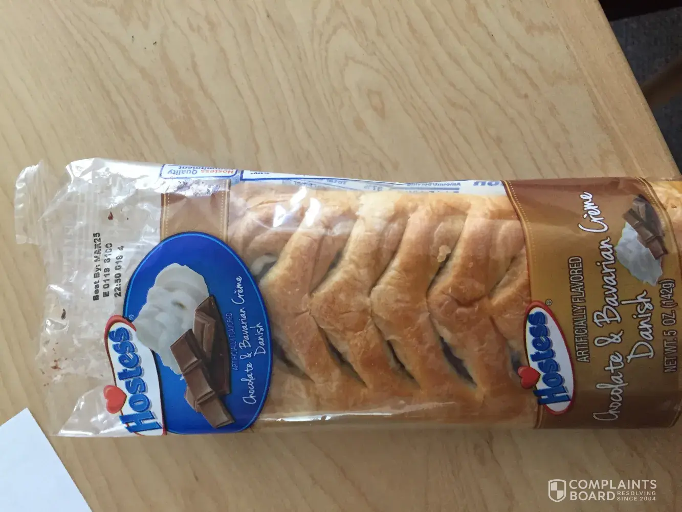 After I got to the office, I opened to package and uncovered a large spot on the back side of the danish covered in MOLD. This danish has a "best by" date of MARCH25 (E 0119 8100 is printed on package). I am VERY glad I waited until I got back to my office and did not consume the portable danish while I was driving. I would have gotten very sick.