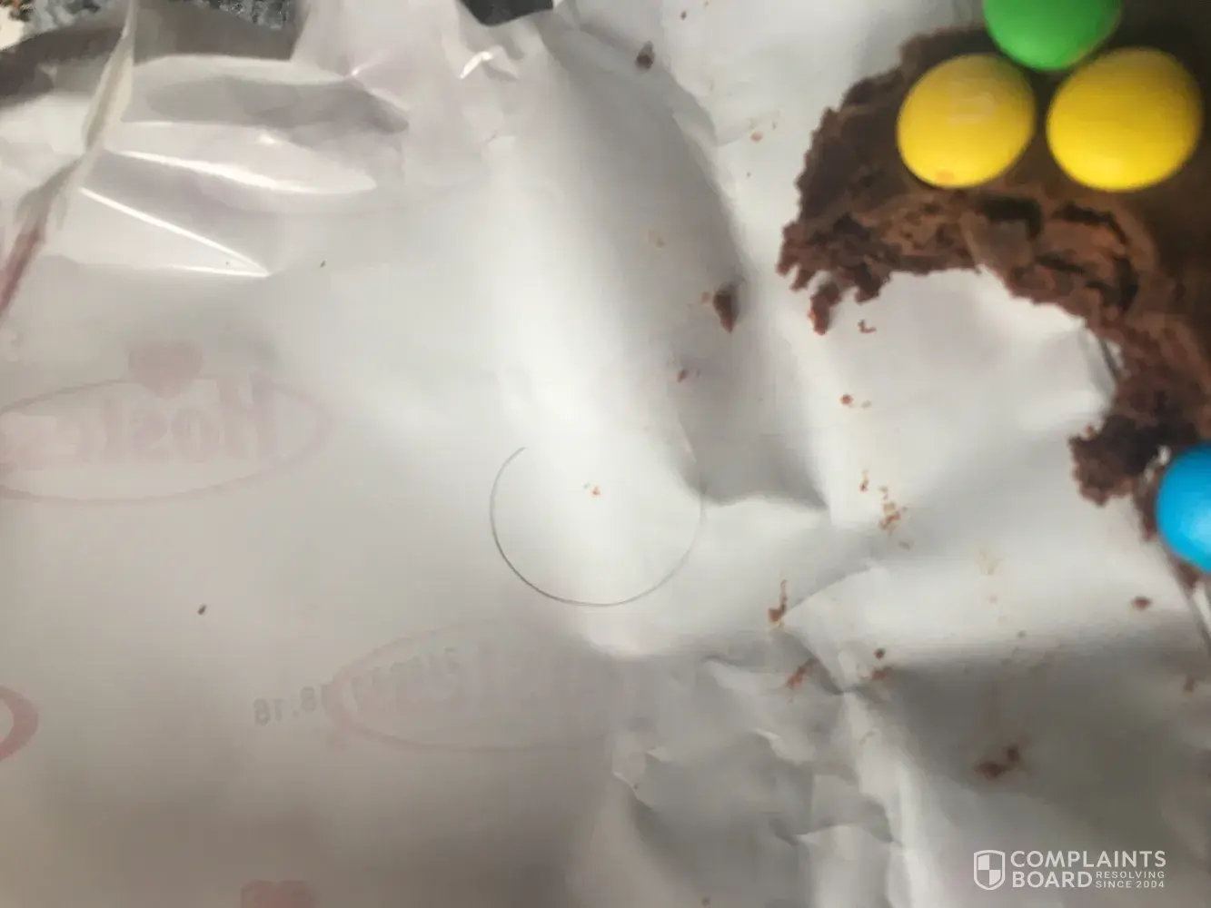 I often buy multipacks of your hostess m&m chocolate brownies at my local b&m and I have done for a while now, although in my latest box I found a curly dark hair in the packaging of one of the individually wrapped brownies. I have light blonde hair therefor I could not have mistaken it for mine. I have attached a picture below of the hair found in my brownie.
