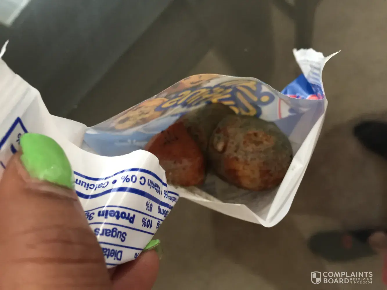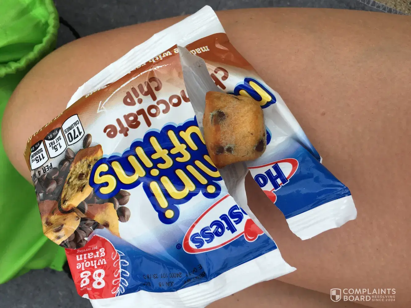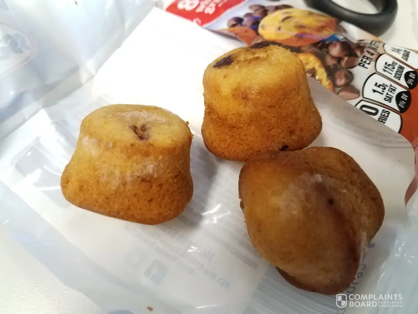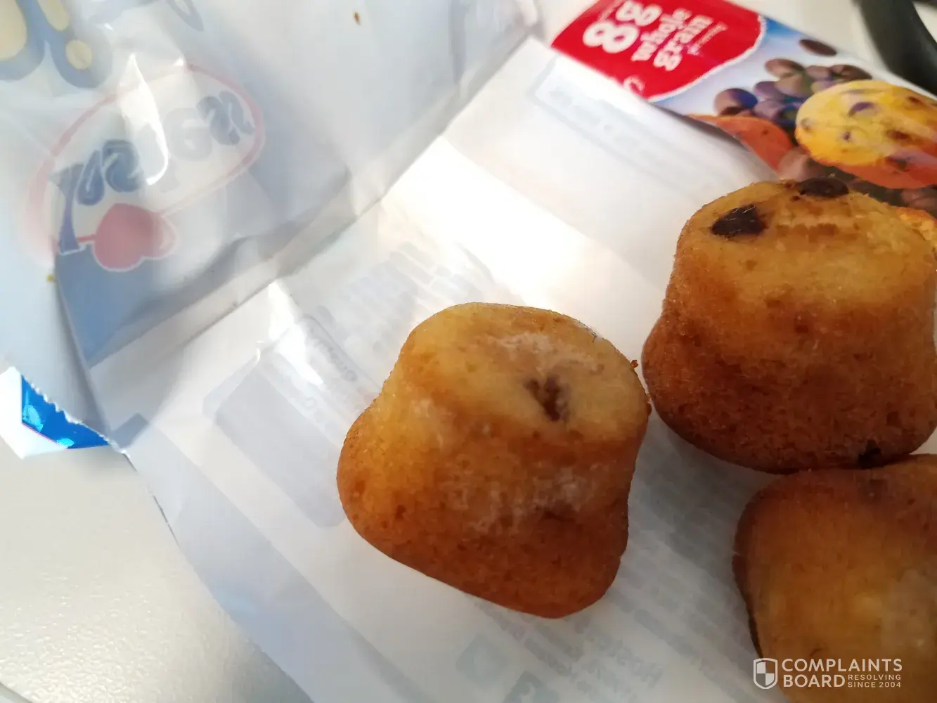 The mini muffins chocolate chip were given to my 6 year old child. When I opened the pack for them and gave them the first muffin there was green fuz and white mold all over the muffin. 5 days before the sell by date. So gross and so disappointed as these were brought for travel and ease of breakfast. My child went without leaving me to go spend more money to feed them at a nearby fast food restaurant.