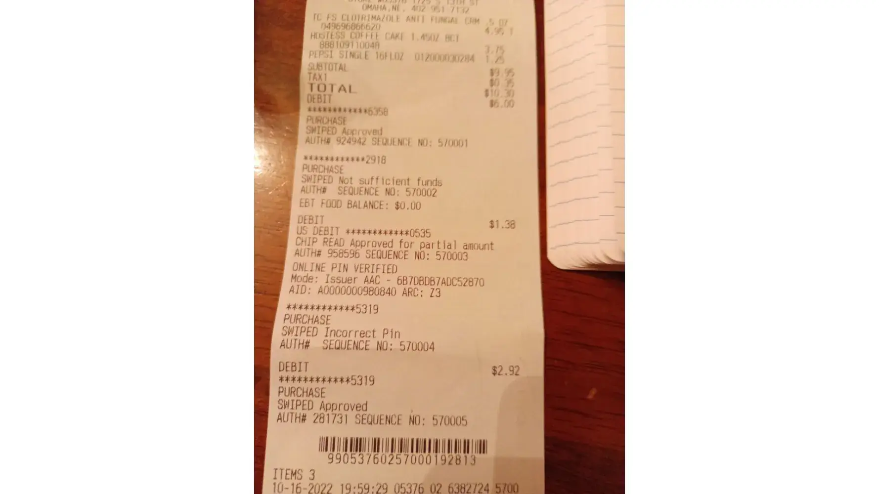 Walmart 10/31/22 $3.48 223 N. Myrtle School Rd Gastonia NC 28052