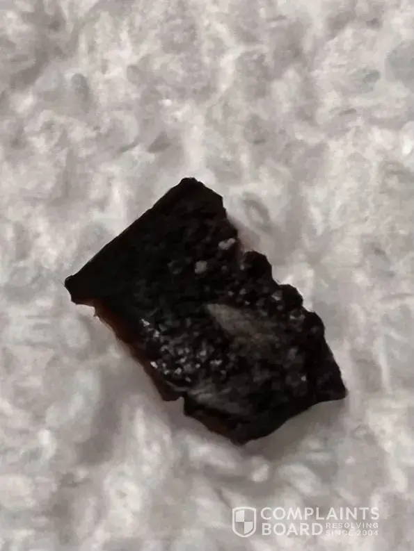 If I would ha e given this to a child they could have choked to death. Again please see your Twitter page for pictures. I luckily bit into it but did break it into the 3 peices seen in the picture.