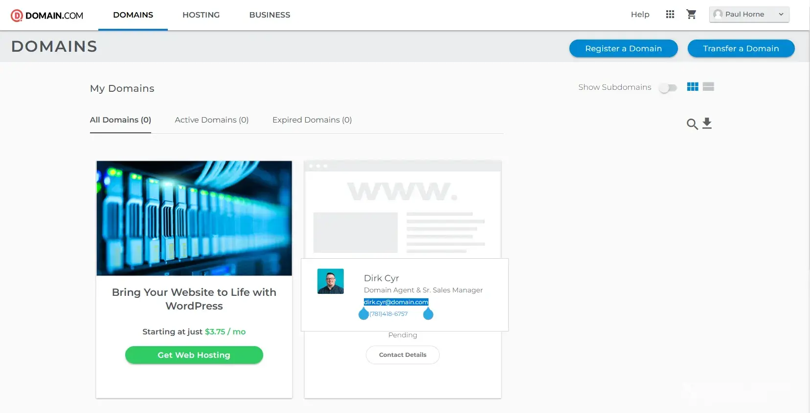 Read full complaintDomain.com - Domain name purchased not provided