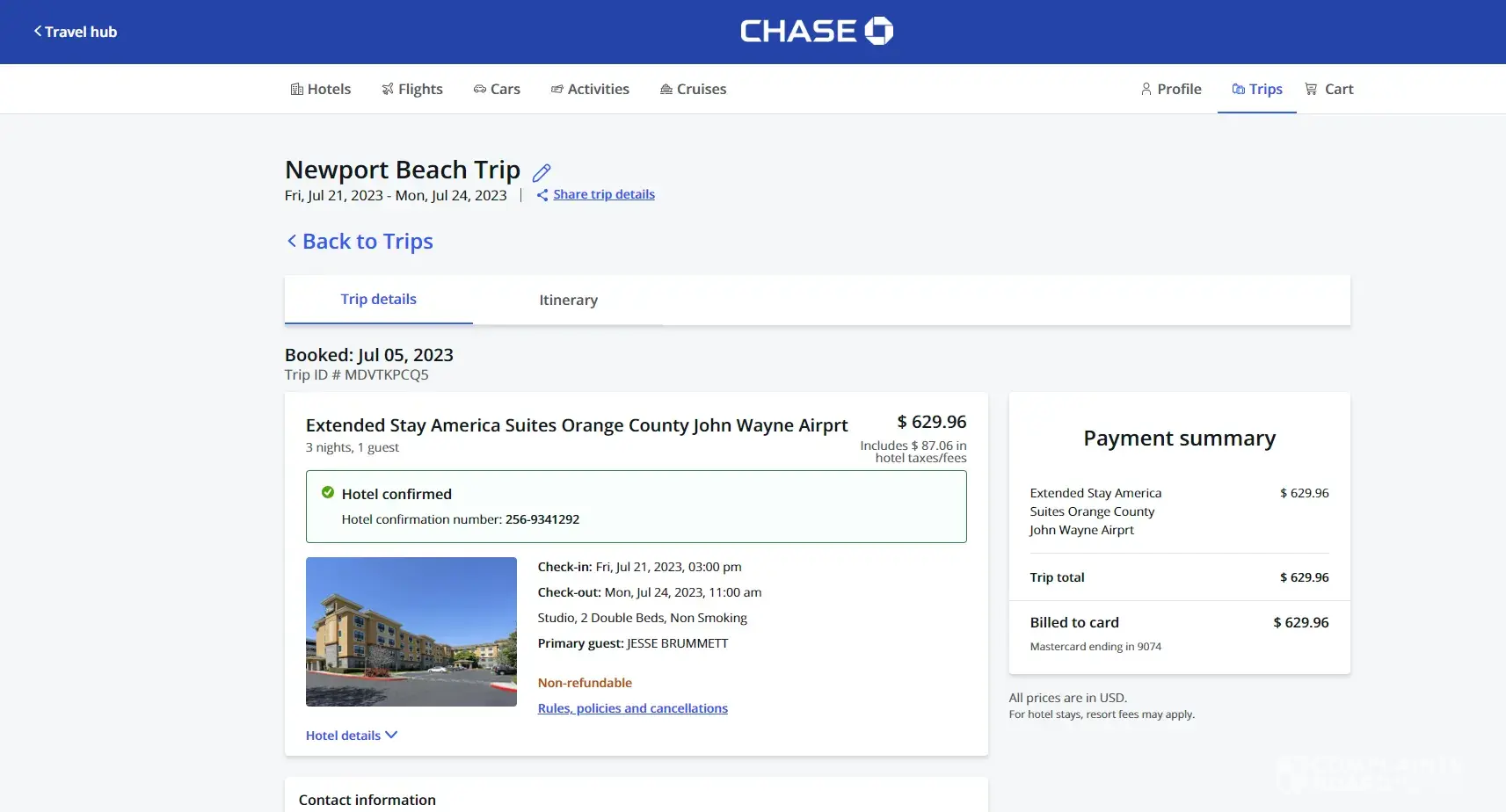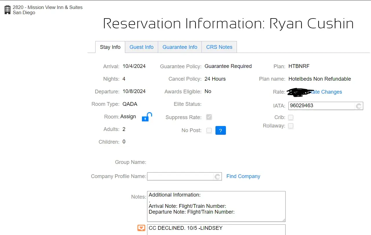 Booked a hotel room through this company