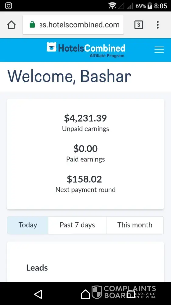 "The explanation from Hotels Combined is that the traffic that we send to their hotel partners, doesn't convert. Therefore, they suspend your account, and do not pay out anything"