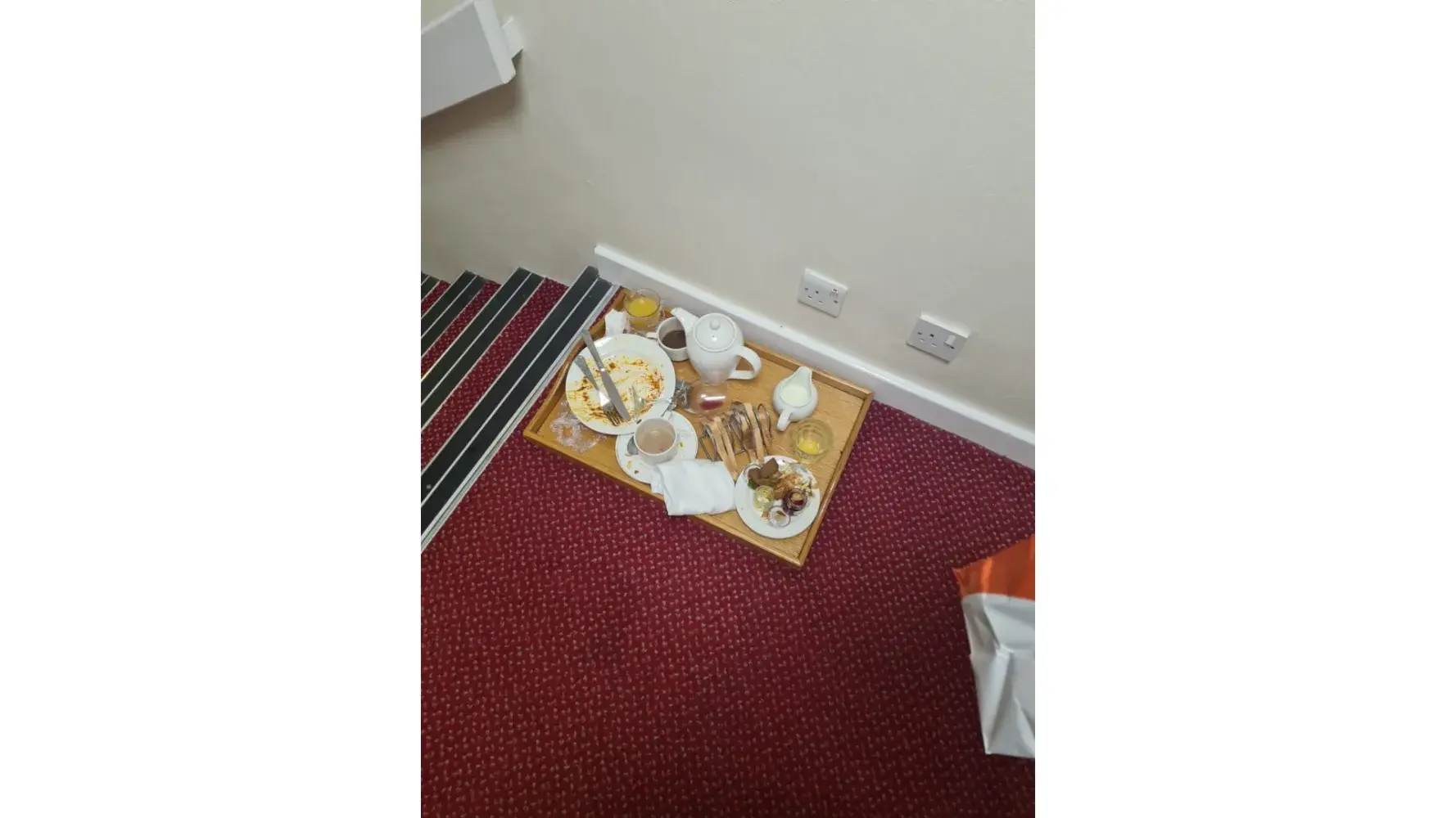 Unfortunately we were extremely disappointed in a number of things for our stay and it put a real down on our evening. When we arrived at the after the allotted check in time we were given a key card and left to find our rooms ourselves. This was hard work considering our room was not in the main hotel but in a different building all together. Once we arrived at our room there was a tray of dirty breakfast plates with half eaten food left on it, considering this was approx. 1600 in the afternoon you would have expected this to have been removed.